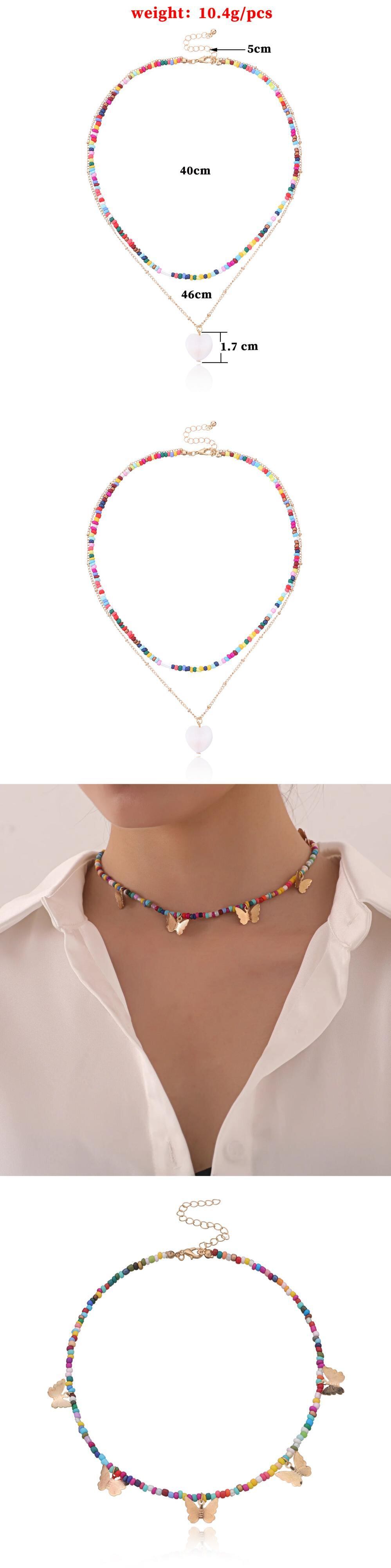 送料無料 ボヘミア手作りレインボービーズキャンディーシェル人格多層衛星ゴシックネックレス女性のハートジュエリーギフト レース AE77887888182422629