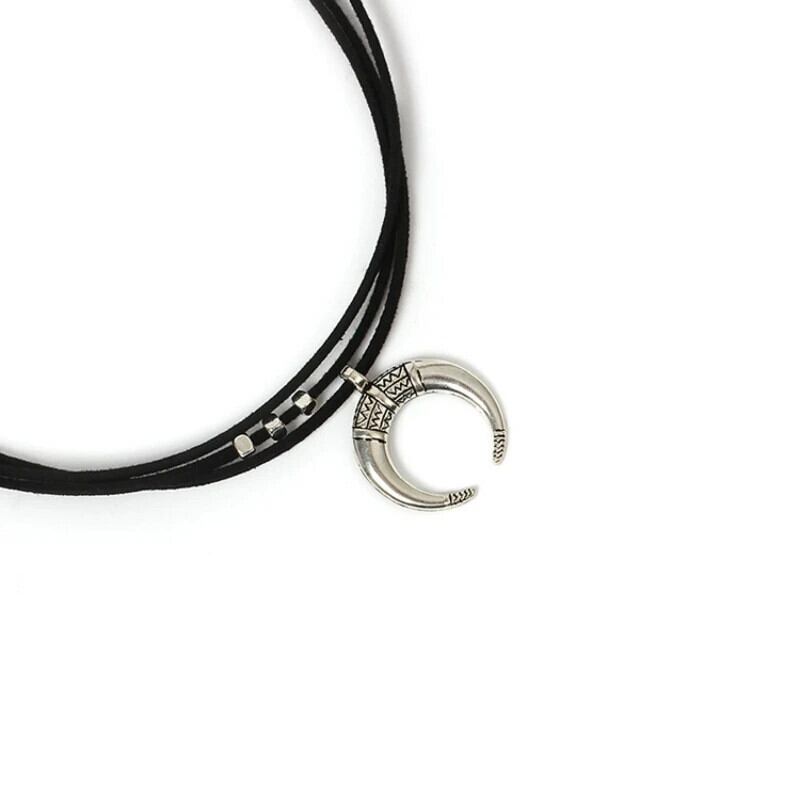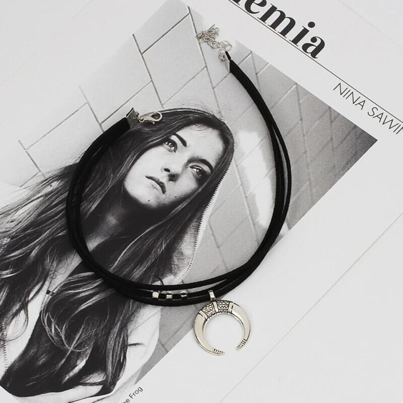送料無料 パンクムーンフェザーネックレス女性ヴィンテージスペイン雄牛ホーン三日月チョーカー 3 層黒ベルベットチョーカーネックレス ブラック レース ビンテージ AE778878829436965569
