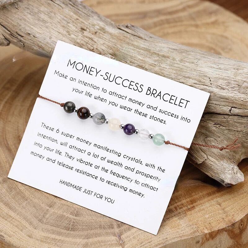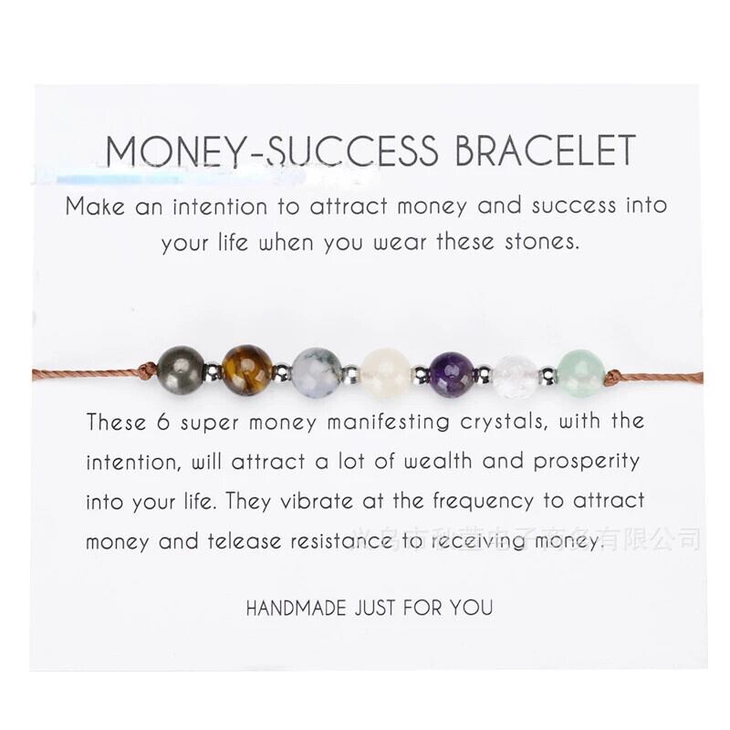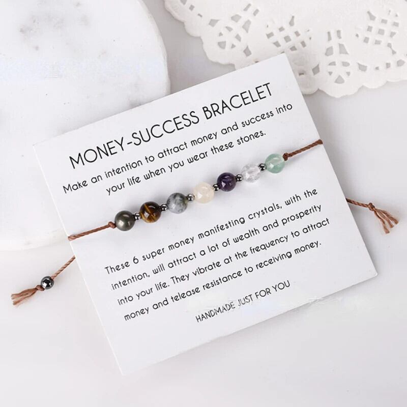 送料無料 手作り三つ編み自然石ビーズワックスラインブレスレットロープ愛チャクラクリスタルチャームブレスレットレイキ幸運ジュエリーウィッシュカードギフト AE778878836230020388