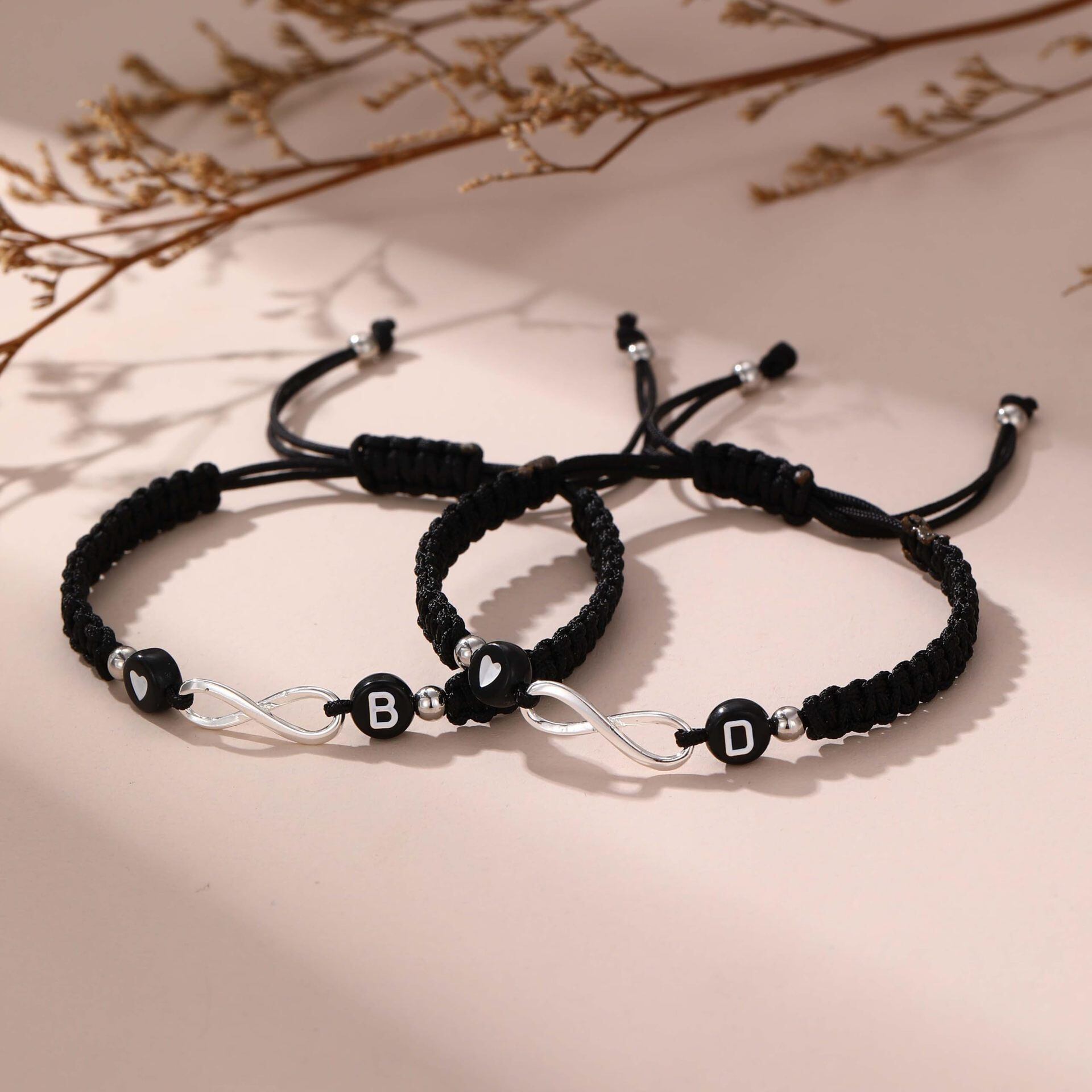 送料無料 1PC 26 文字イニシャルインフィニティチャームブレスレット手作り調整可能な A-Z 名編組ブレスレット女性男性友情ジュエリー アジャスタブル AE778878840898005783