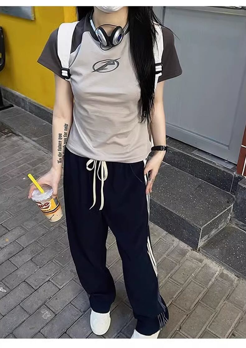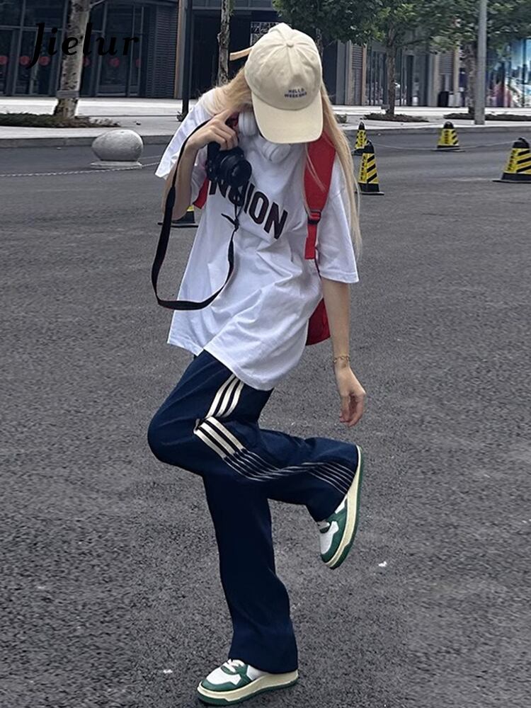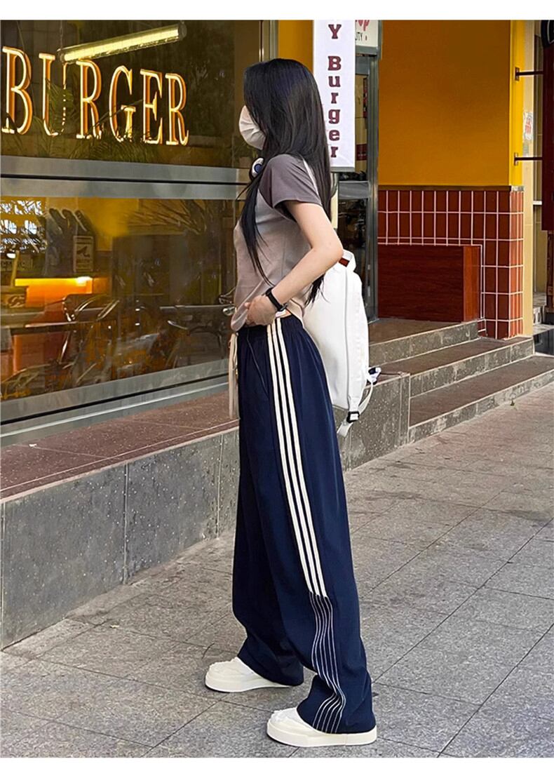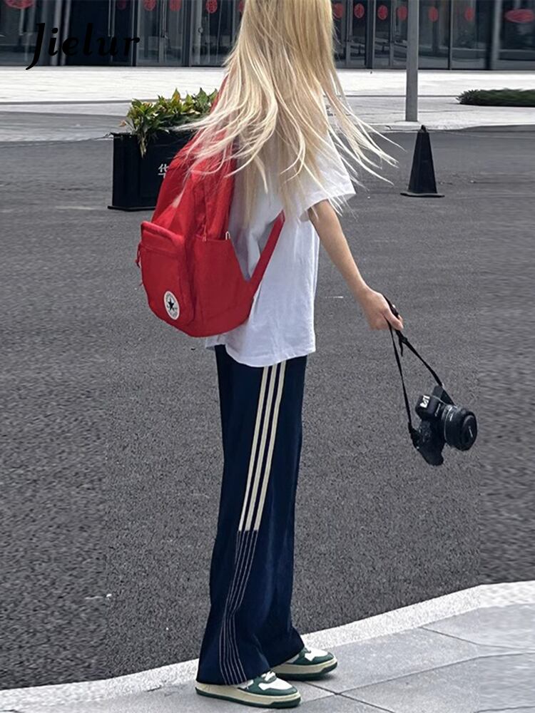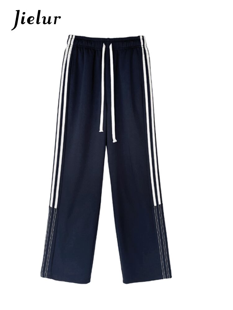 送料無料 Jielur 春ルーズストレートレッグパンツストリートウエスト女性パンツアメリカンストライプネイビーストリート女性パンツ スプリング 春物 AE12188787836716611116