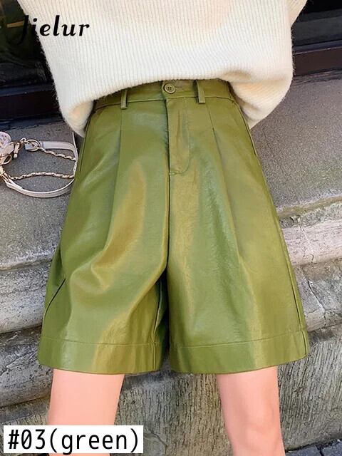 送料無料 Jielur Pu レザーショーツ女性秋冬バミューダ弾性ウエストルーズ 5 点革ズボン S-4XL サイズショーツ エラスティック 伸縮 オータム 秋物 ウィンター 冬物 ブルマー AE12188787833536962277