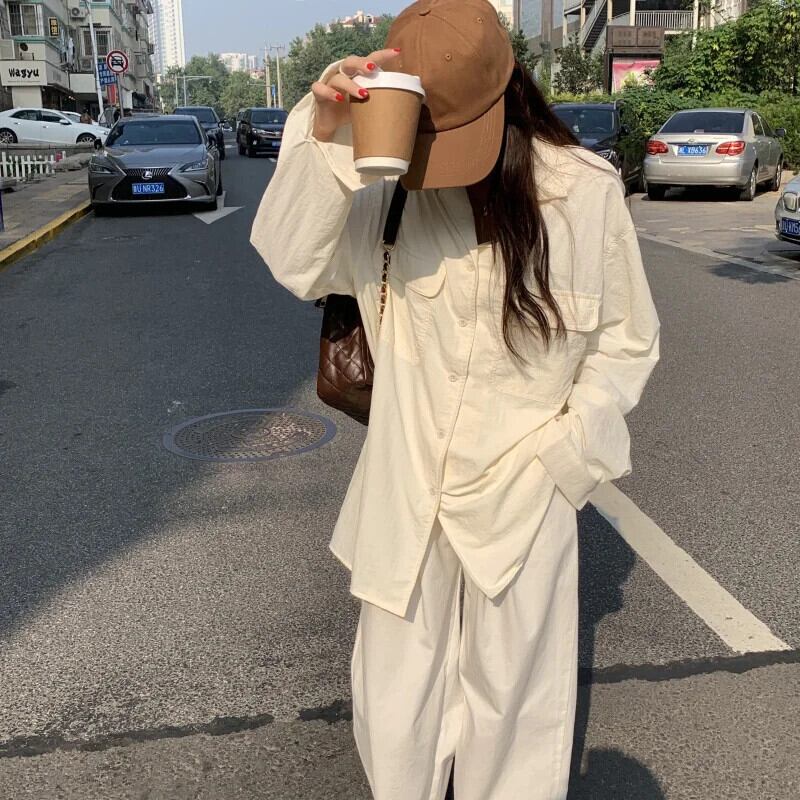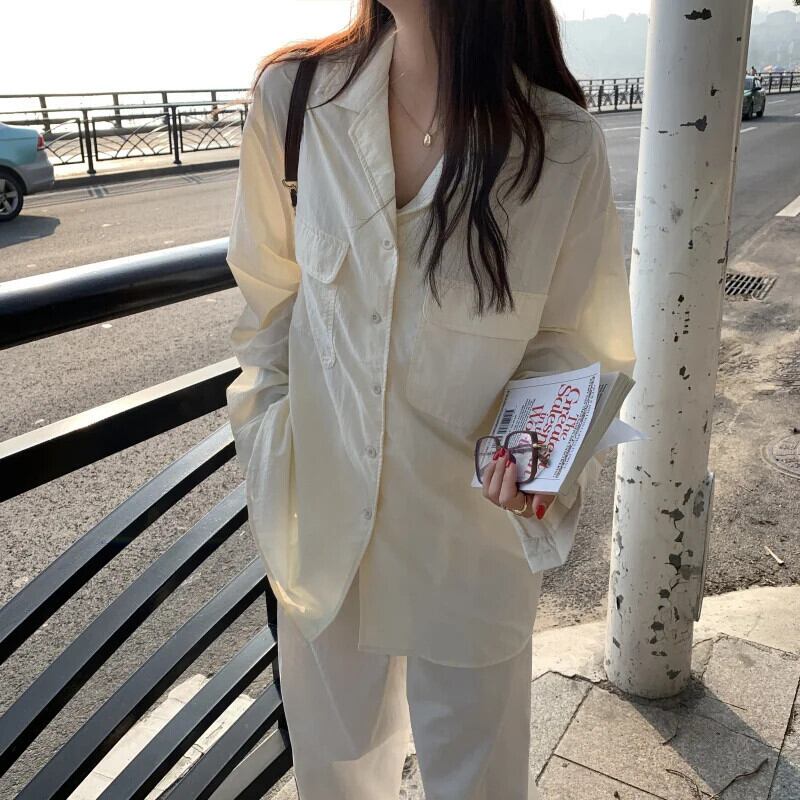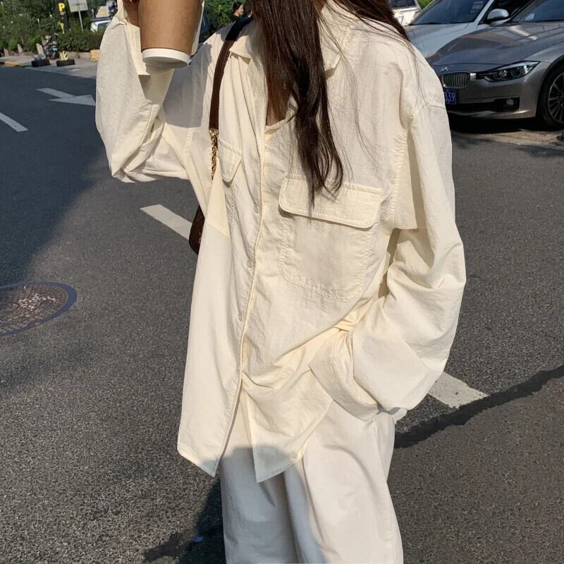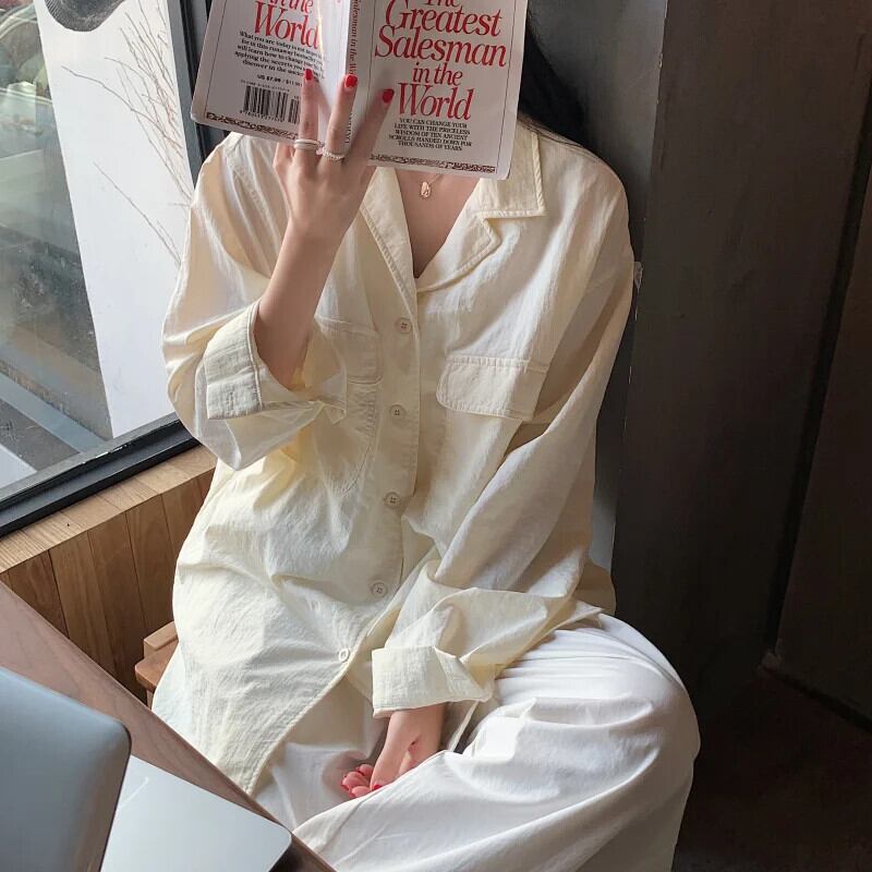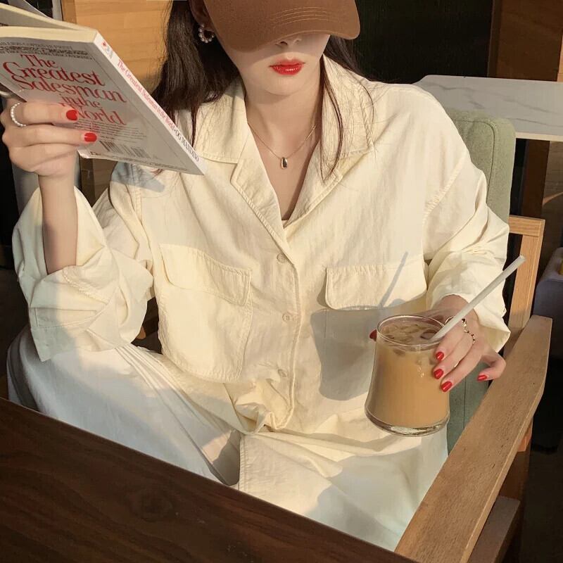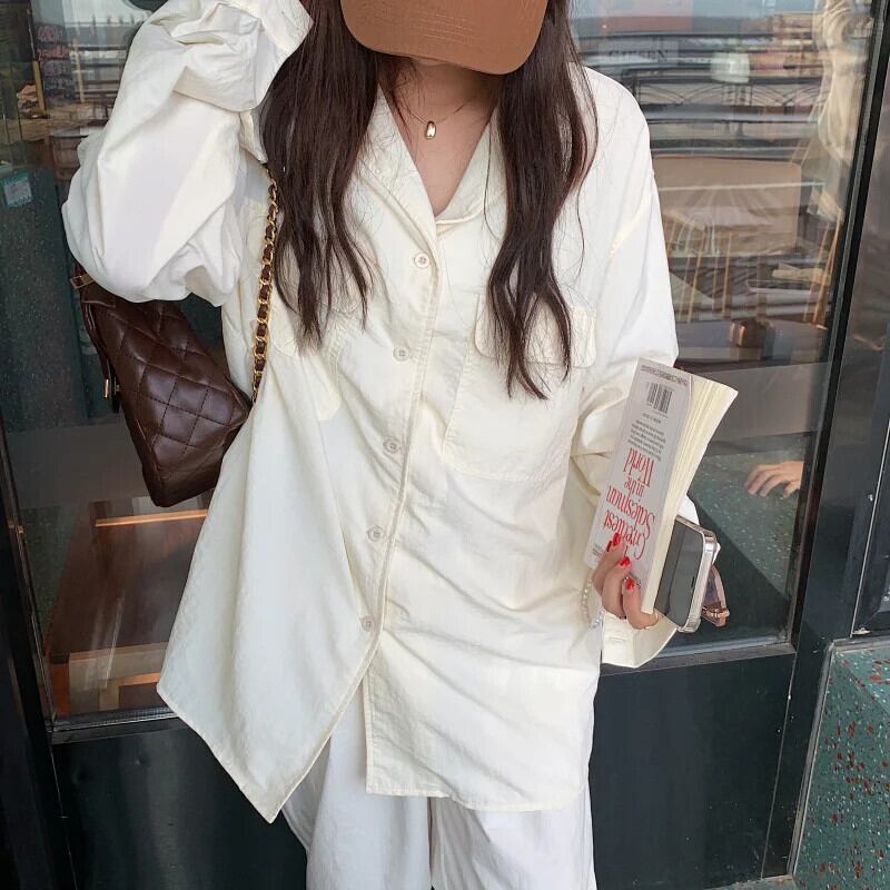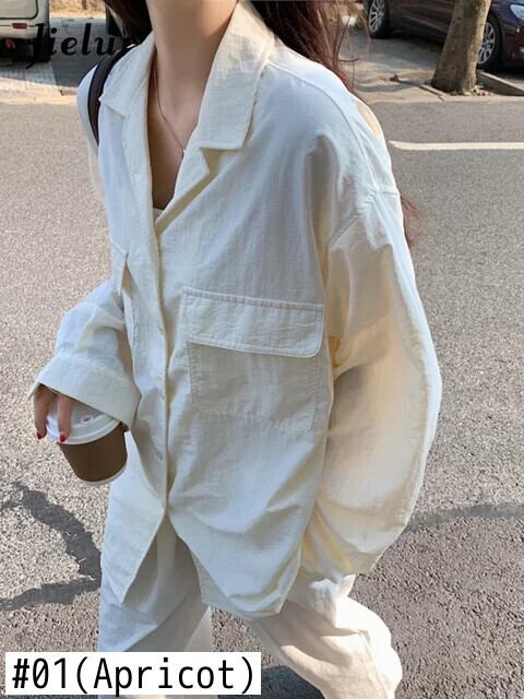 送料無料 Jielur ノッチ襟アプリコットシャツ長袖春秋スタイルオフィスシャツオフィスルーズブラウス ロング スプリング 春物 オータム 秋物 会社 学校 通勤や通学にも AE12188787830516306290