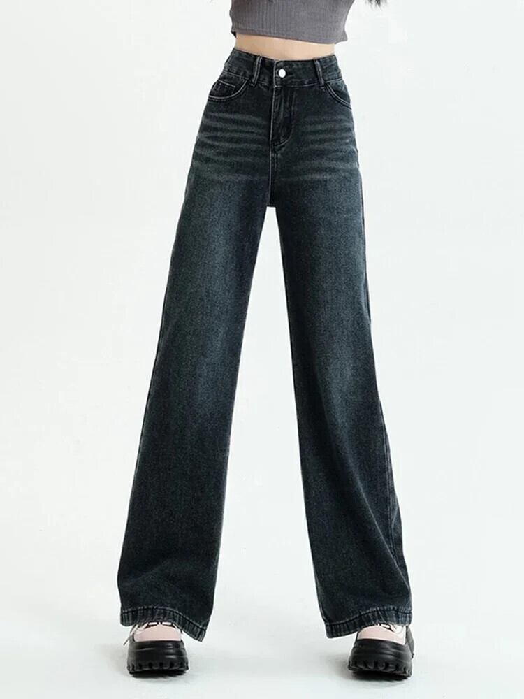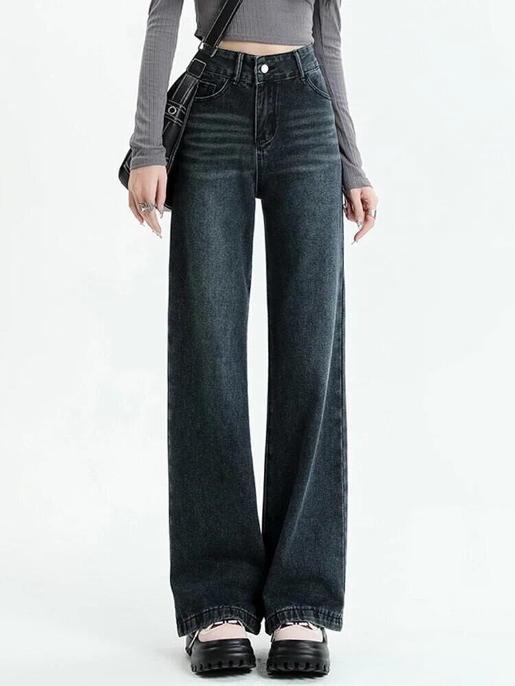 送料無料 夏ボタンルーズストリートヴィンテージアメリカンスタイル Clic ウエストワイドレッグパンツ無地ジーンズ女性 サマー 夏物 ワイドパンツ ソリッドカラー ビンテージ AE12188787820015923832