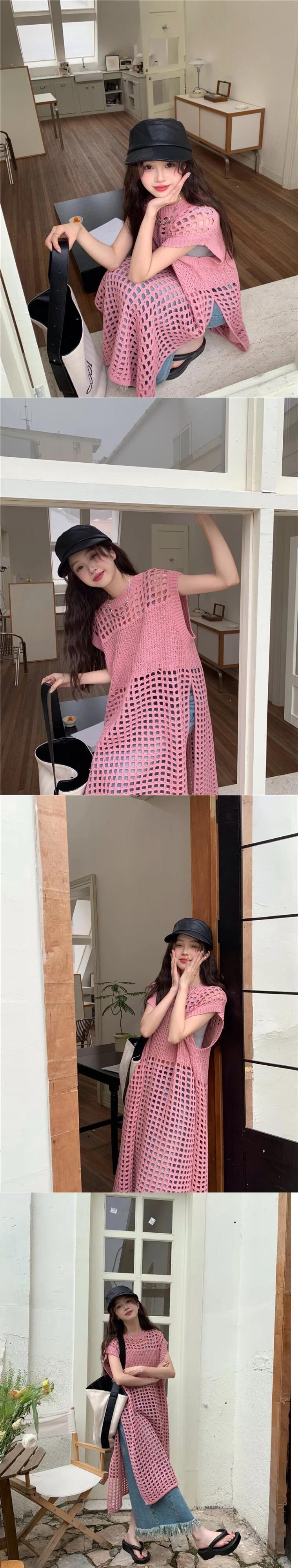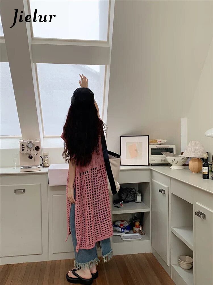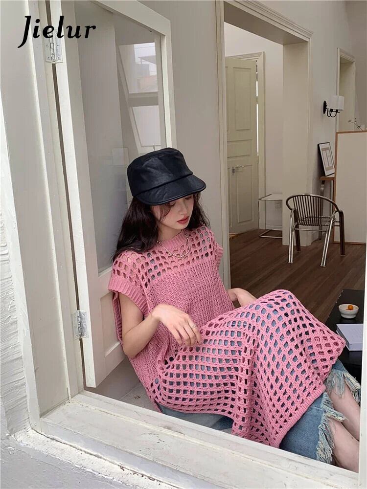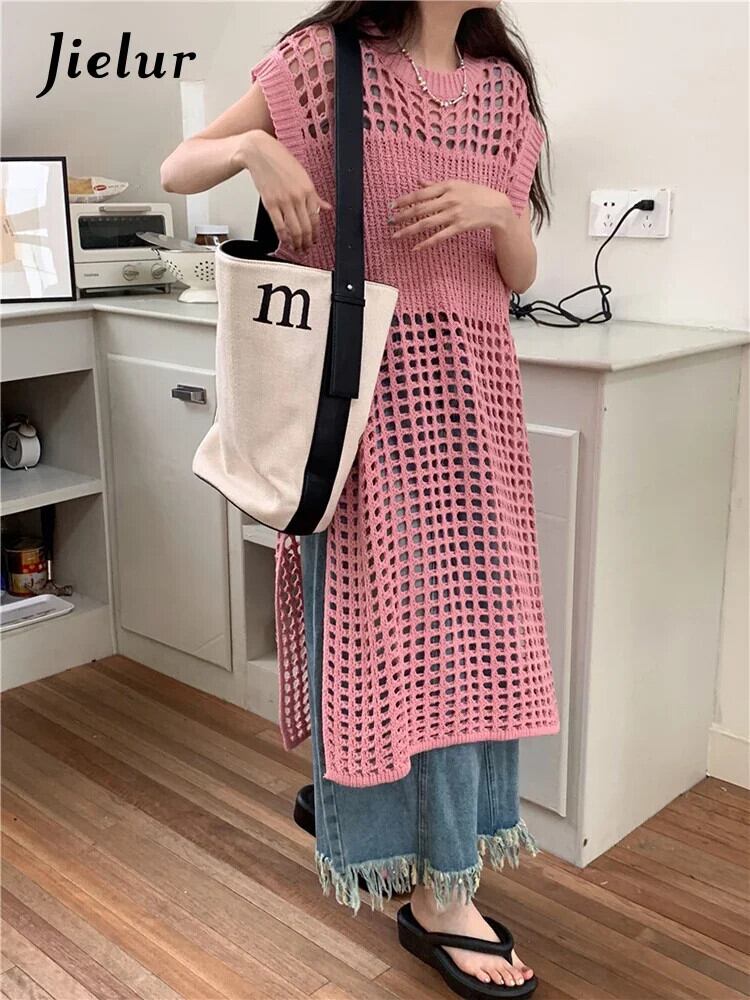 送料無料 Jielur 夏 Y2K 中空アウト女性のドレスシックな固体甘いセクシーなドレスの女性のピンクのルーズドレス 大人ガーリー スウィート キュート カジュアル サマー 夏物 ソリッドカラー AE12188787837376963230