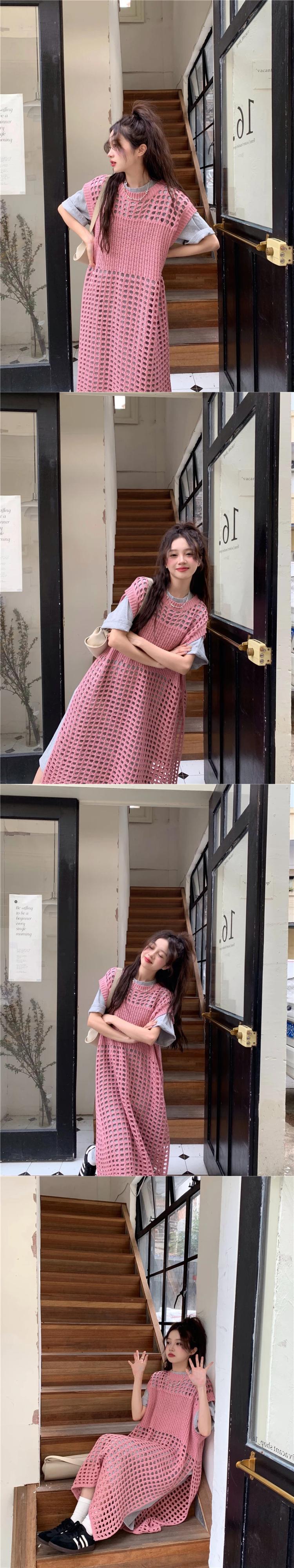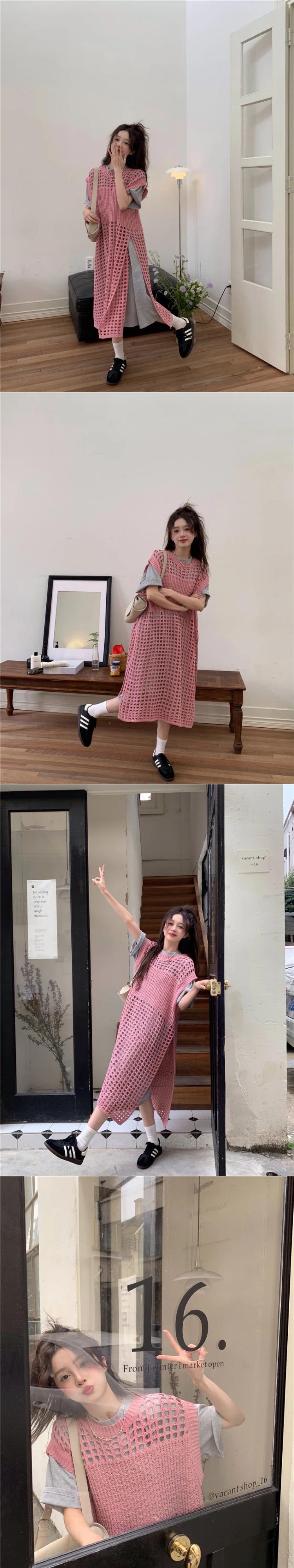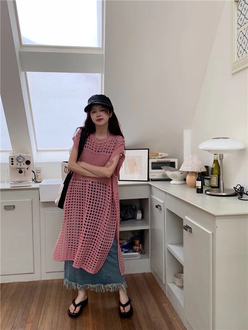 送料無料 Jielur 夏 Y2K 中空アウト女性のドレスシックな固体甘いセクシーなドレスの女性のピンクのルーズドレス 大人ガーリー スウィート キュート カジュアル サマー 夏物 ソリッドカラー AE12188787837376963230