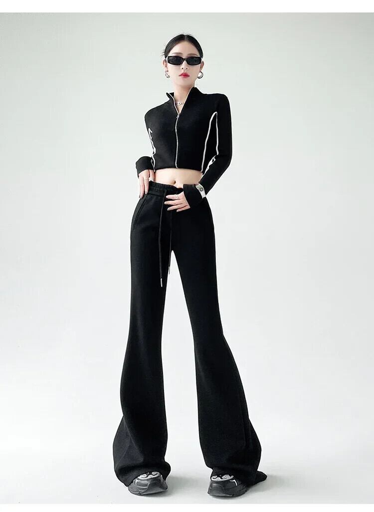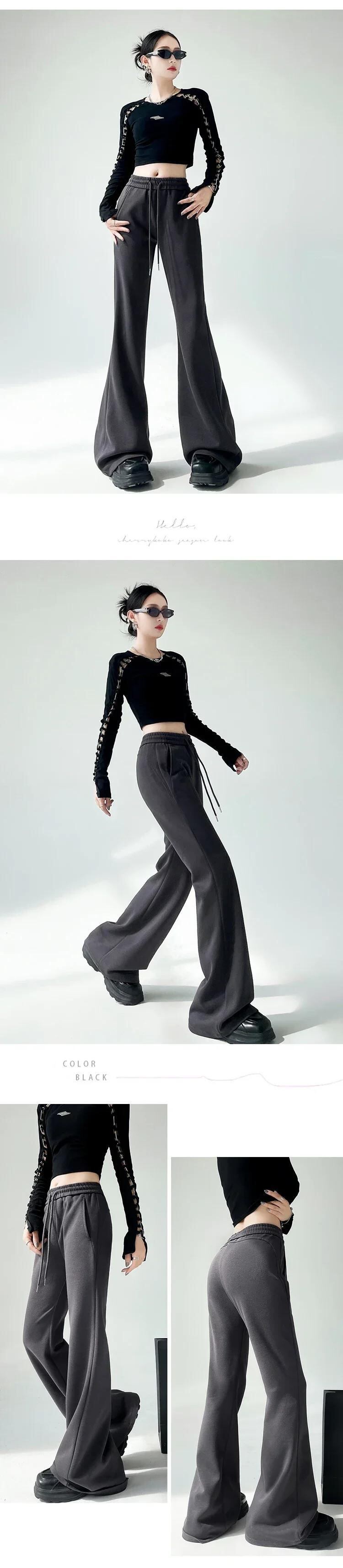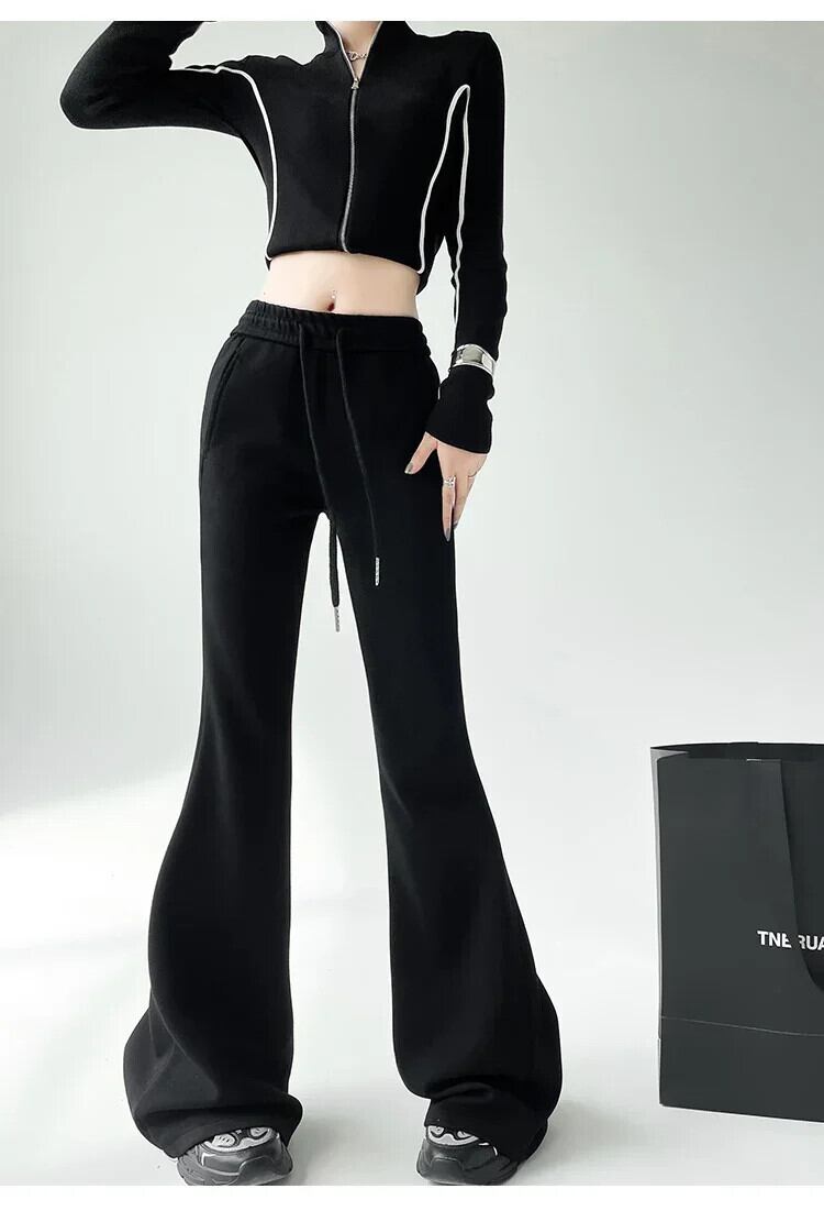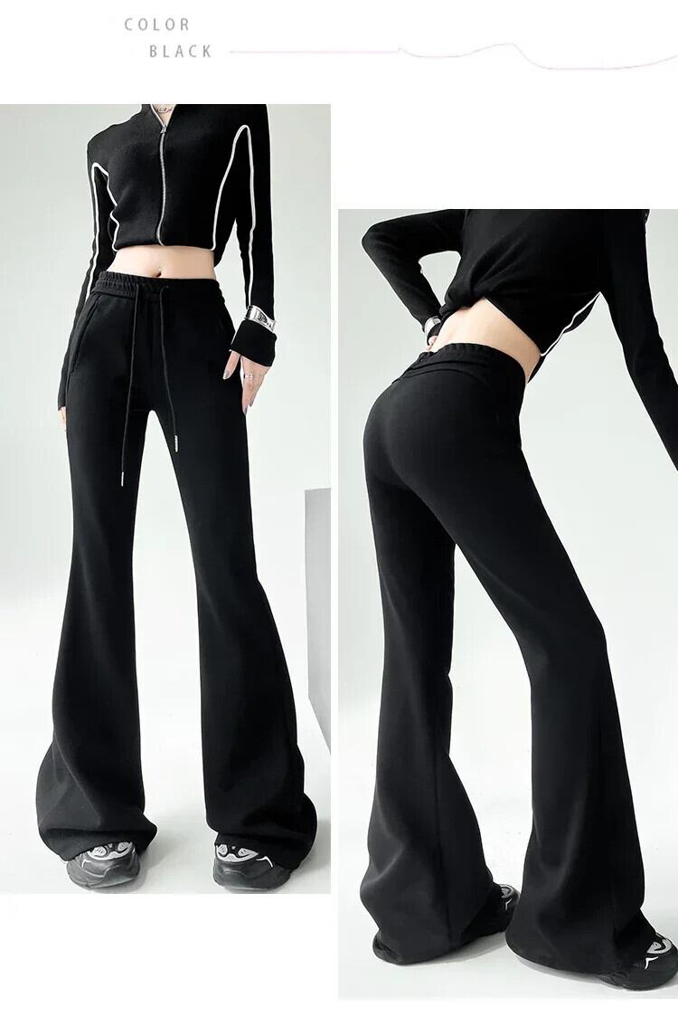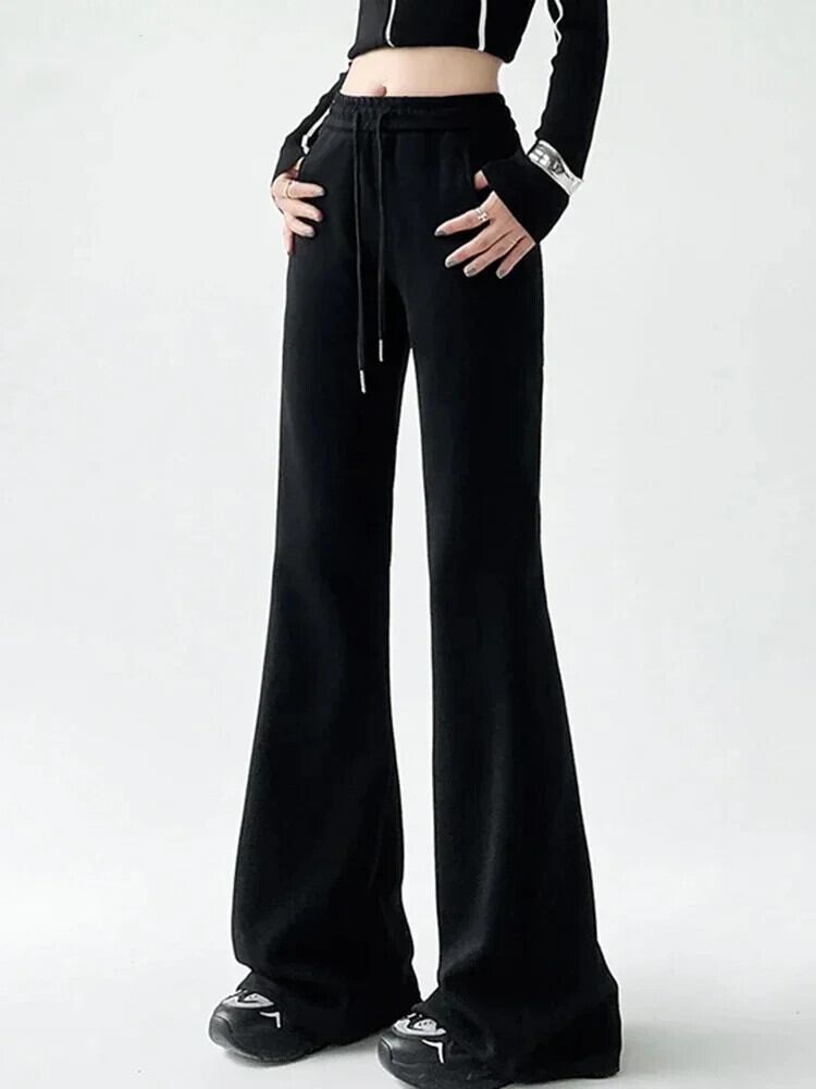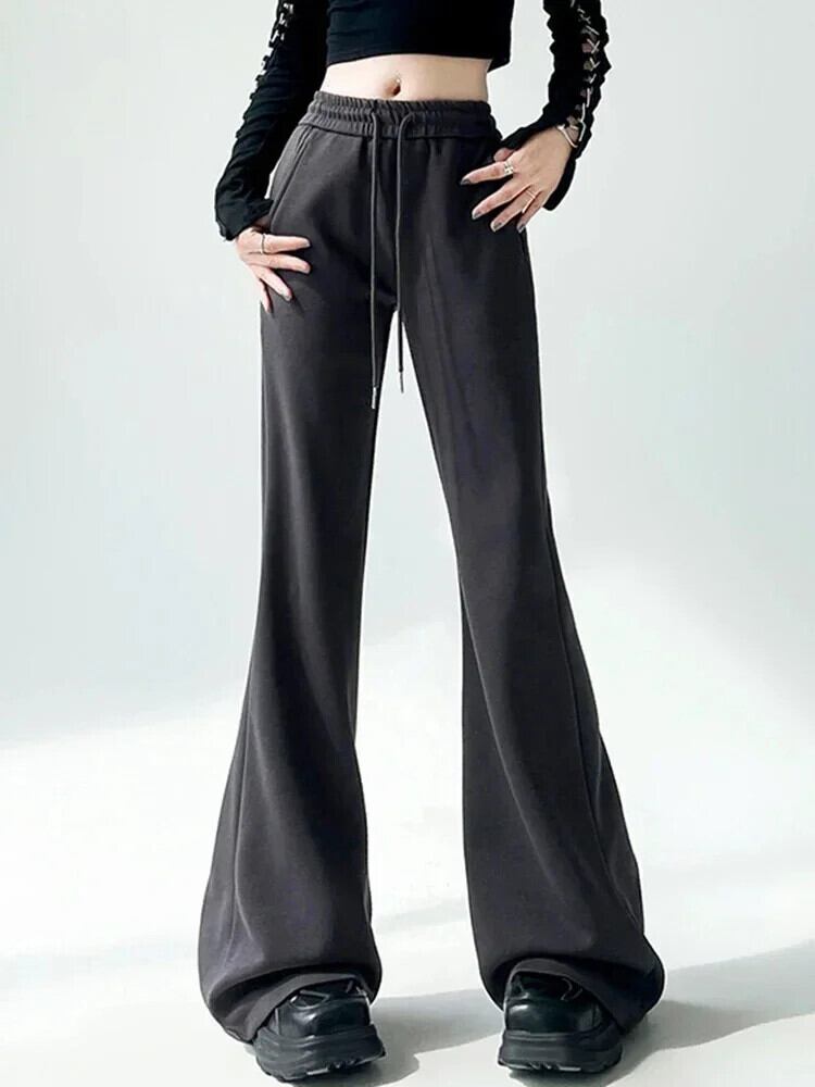 送料無料 ソリッドカラーウエスト巾着フレアパンツ女性スリムアメリカンスタイルオフィスルックセクシーな女性のパンツ 会社 学校 通勤や通学にも AE12188787824581091445