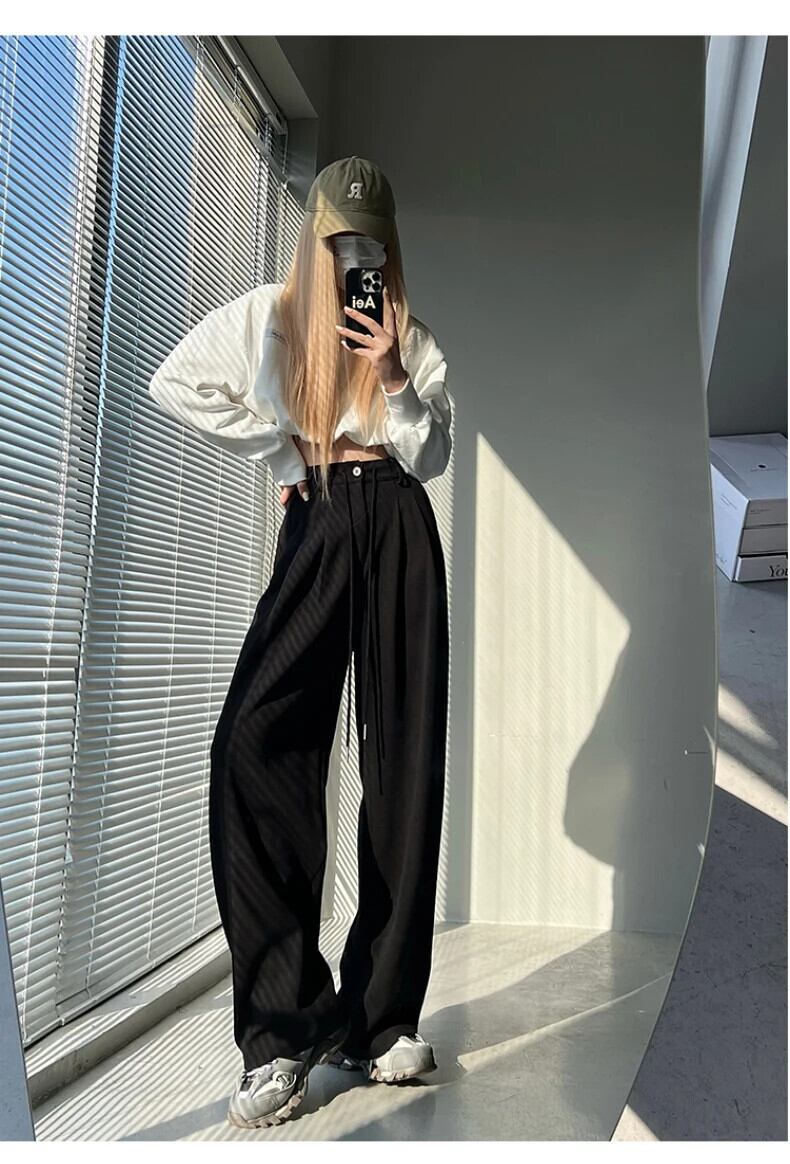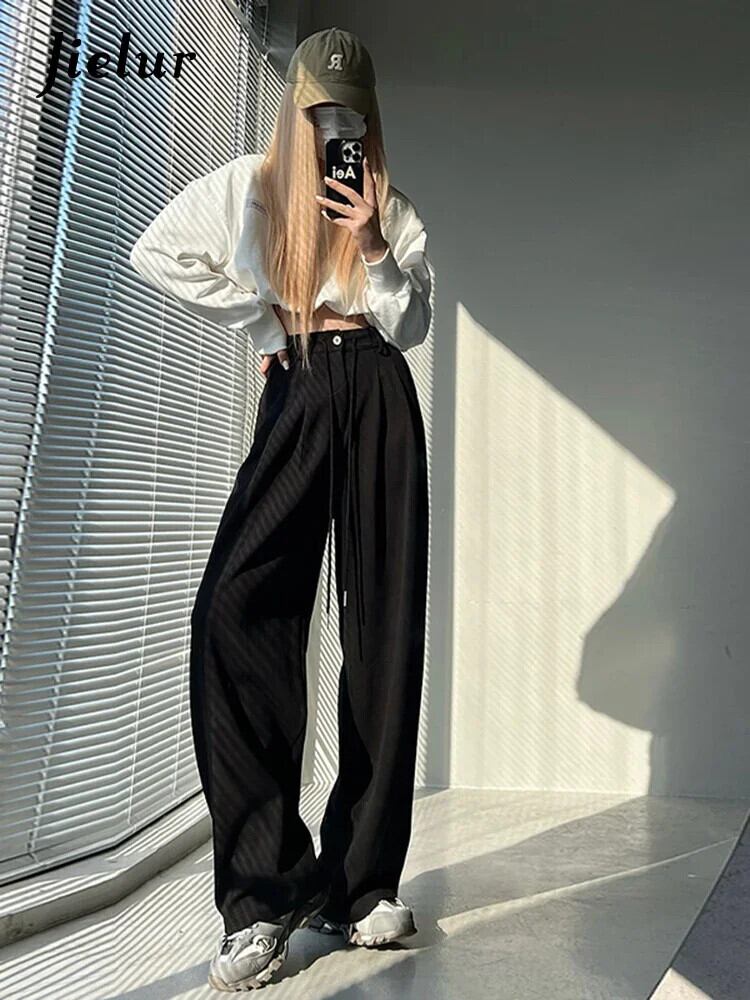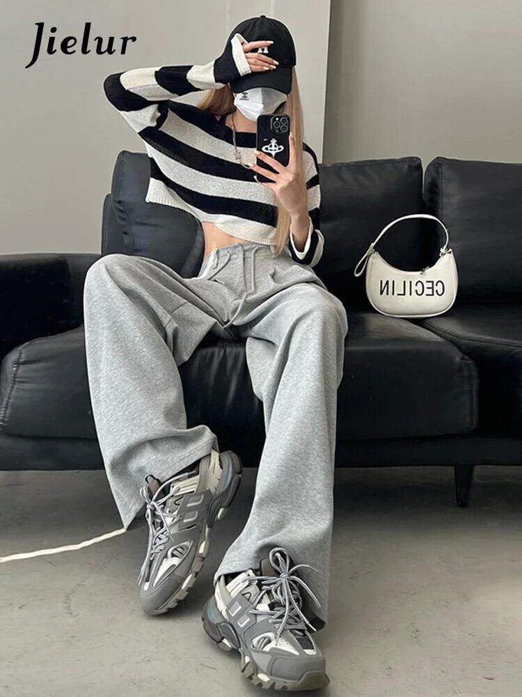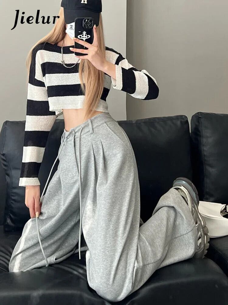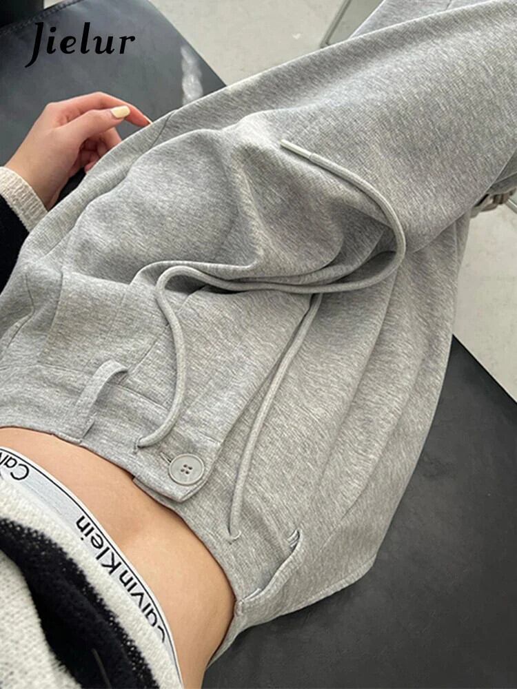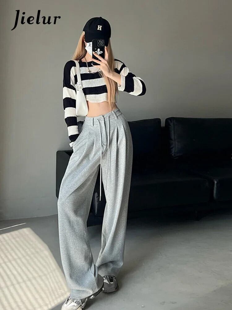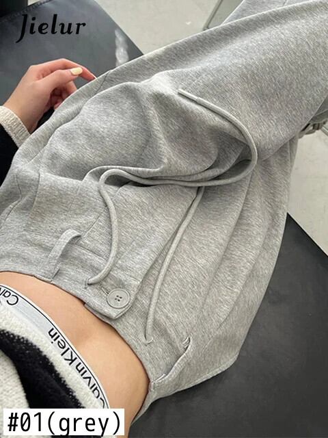 送料無料 Jielur ウエストアメリカンソリッドカラーの女性のパンツ巾着ルーズストレートパンツ女性グレーパンツ夏 サマー 夏物 AE12188787818997117966