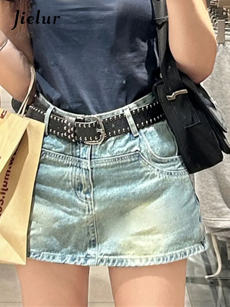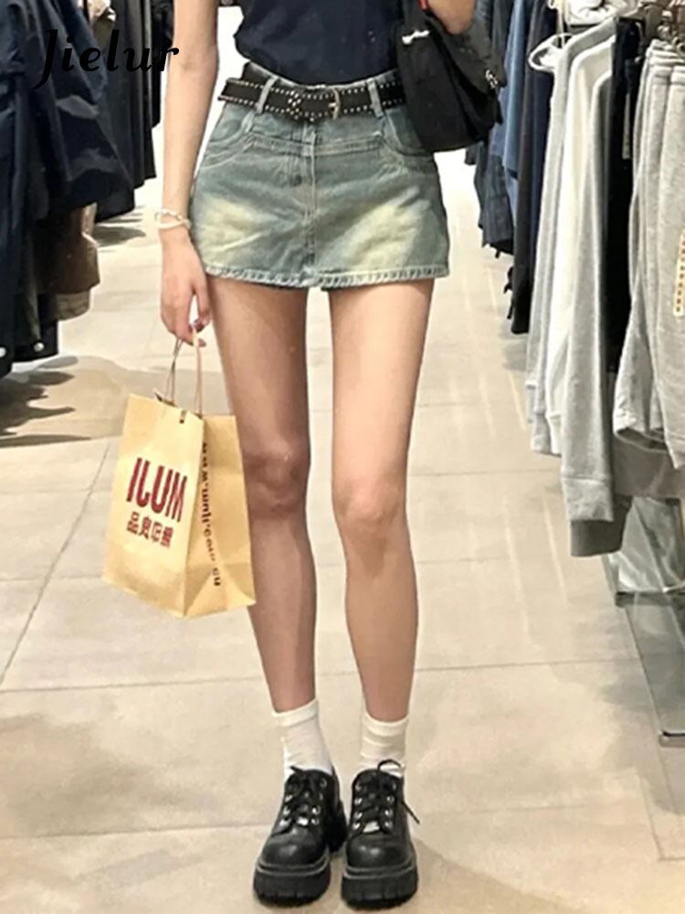 送料無料 Jielur 夏スリムウエストデニムスカート女性のセクシーなストリートシックな女性のスカートブルーシンプルなスカート サマー 夏物 AE12188787866265884584