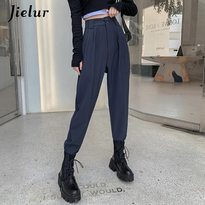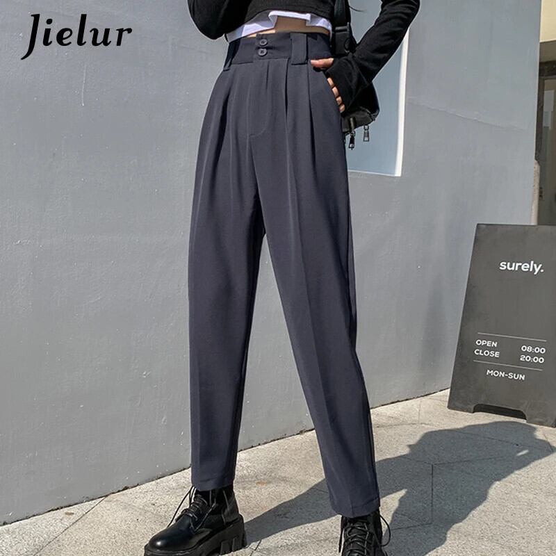 送料無料 Jielur スーツ女性パンツウエストカーゴパンツ女性ボーイフレンドクールブラックカーキズボンヒップスター S-XL ジッパー AE12188787821714960169