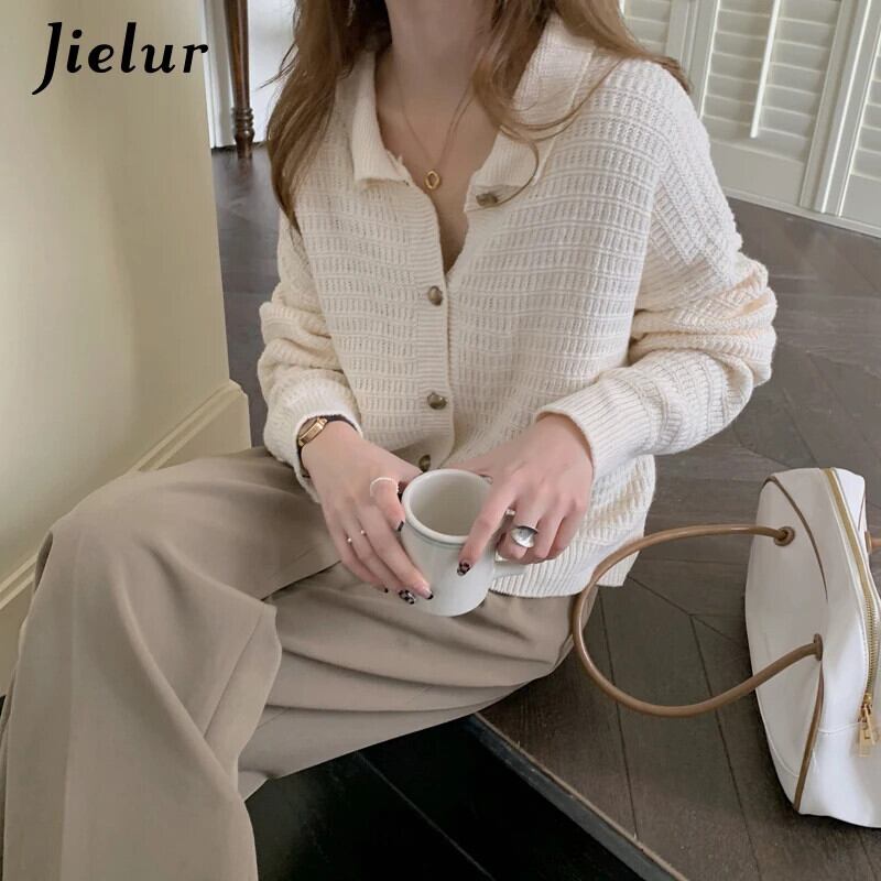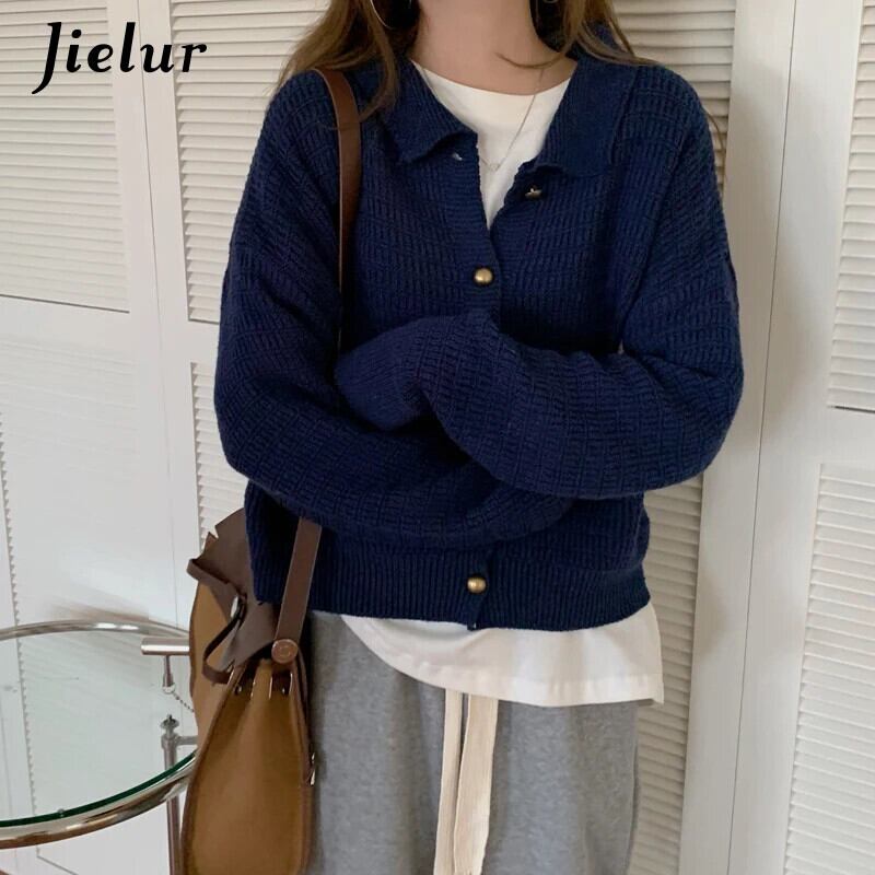 送料無料 Jielur スタイルニットカーディガンルーズ長袖女性セータージャケットシングルブレストネイビーブルーアプリコットセーター ロング AE12188787849919226681