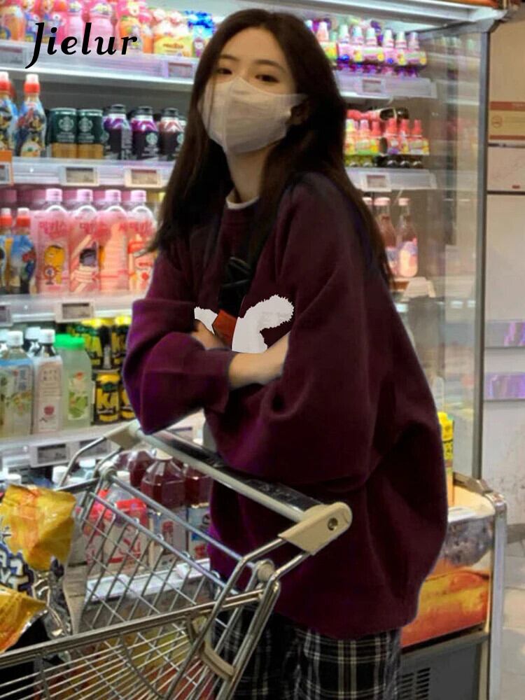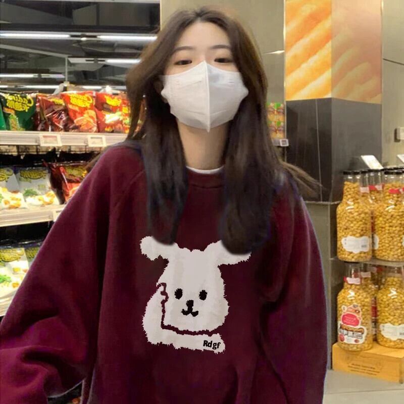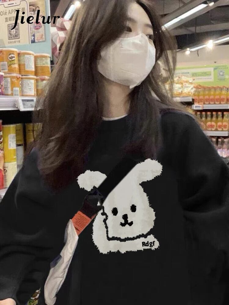 送料無料 Jielur 黒ブルゴーニュパーカー女性暖かいフリースかわいいウサギ Kpop トレーナー女の子 O ネックトップパーカー M-XXL ブラック 大人ガーリー スウィート キュート カジュアル Oネック AE12188787821240233693