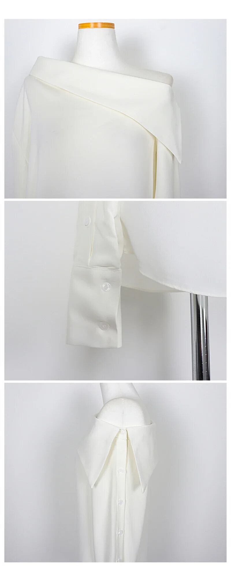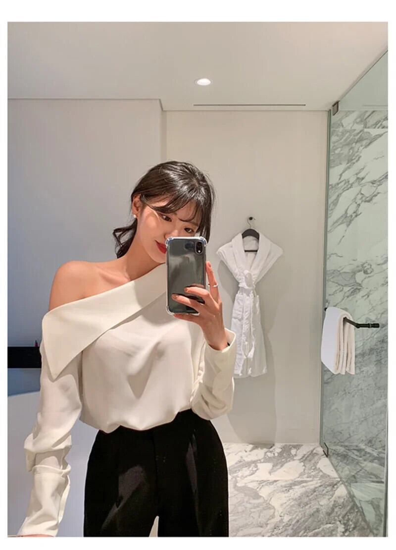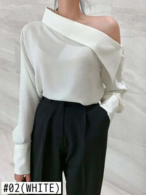 送料無料 オフショルダー ブラック レディース シフォン シャツ Bl オフィス レディース 春 レディース 長袖 トップ ロング スプリング 春物 会社 学校 通勤や通学にも AE1218878782936166162