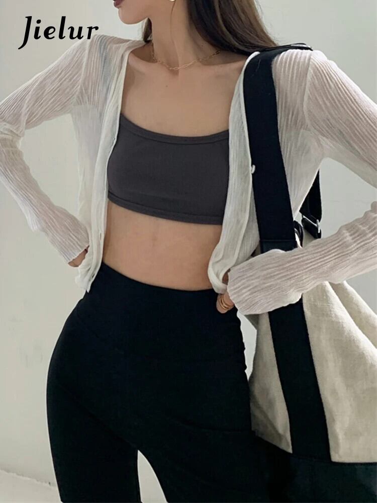 送料無料 Jielur 秋ルーズスリムカーディガン女性シンプルベーシックソリッドカラーの女性のカーディガン白黒ストリートカーディガン ホワイト ブラック オータム 秋物 AE12188787895517686761