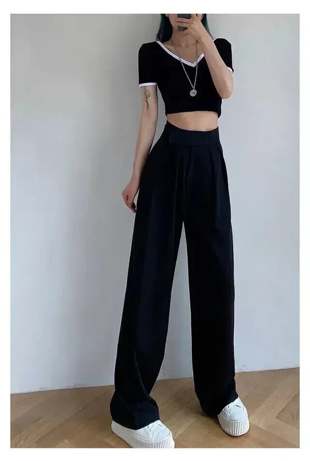 送料無料 ベーシックソリッドカラーシンプルヴィンテージウエストワイドレッグパラッツォオフィスパンツブラッククリックスーツパンツ ワイドパンツ ビンテージ 会社 学校 通勤や通学にも AE1218878789986623282
