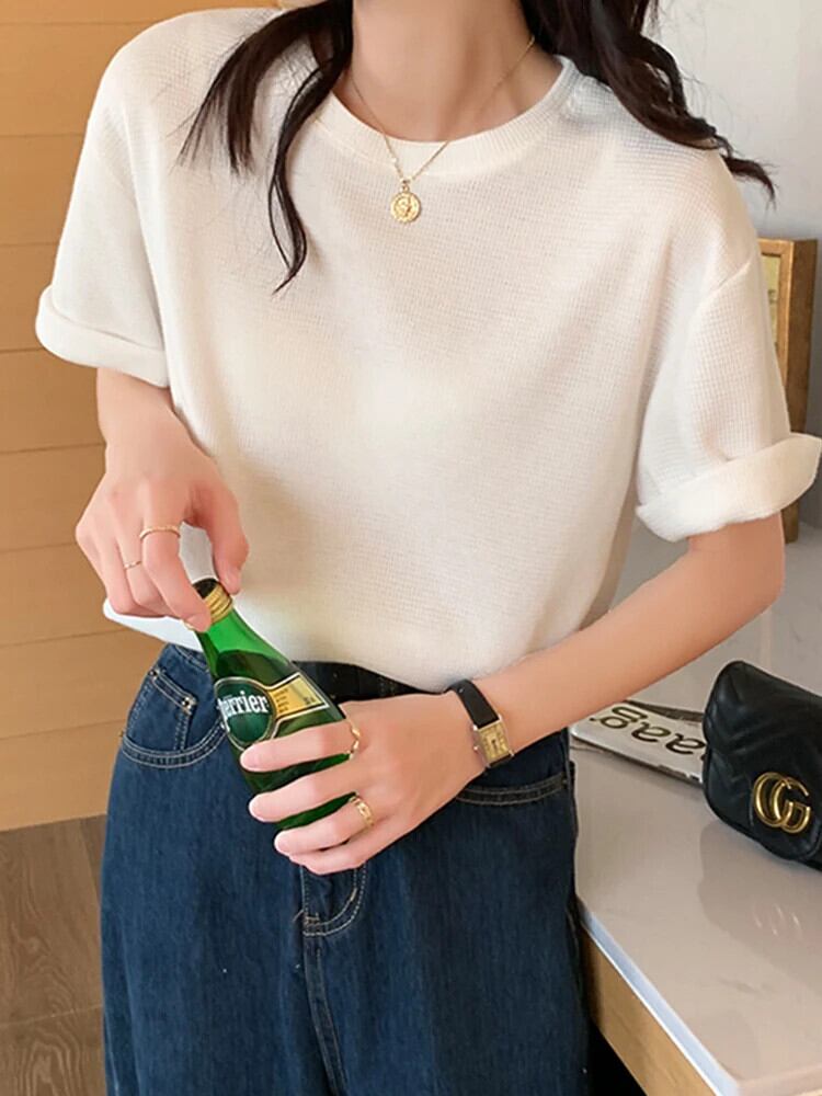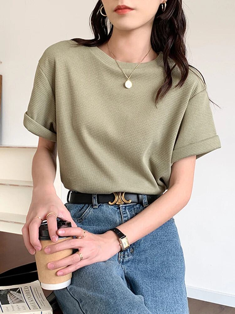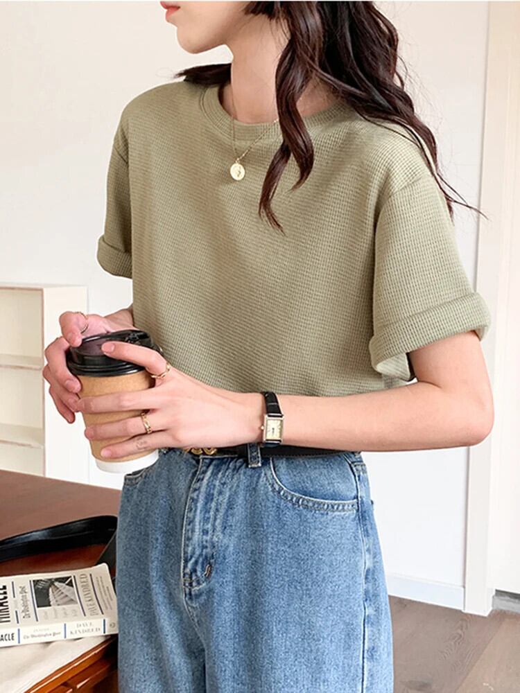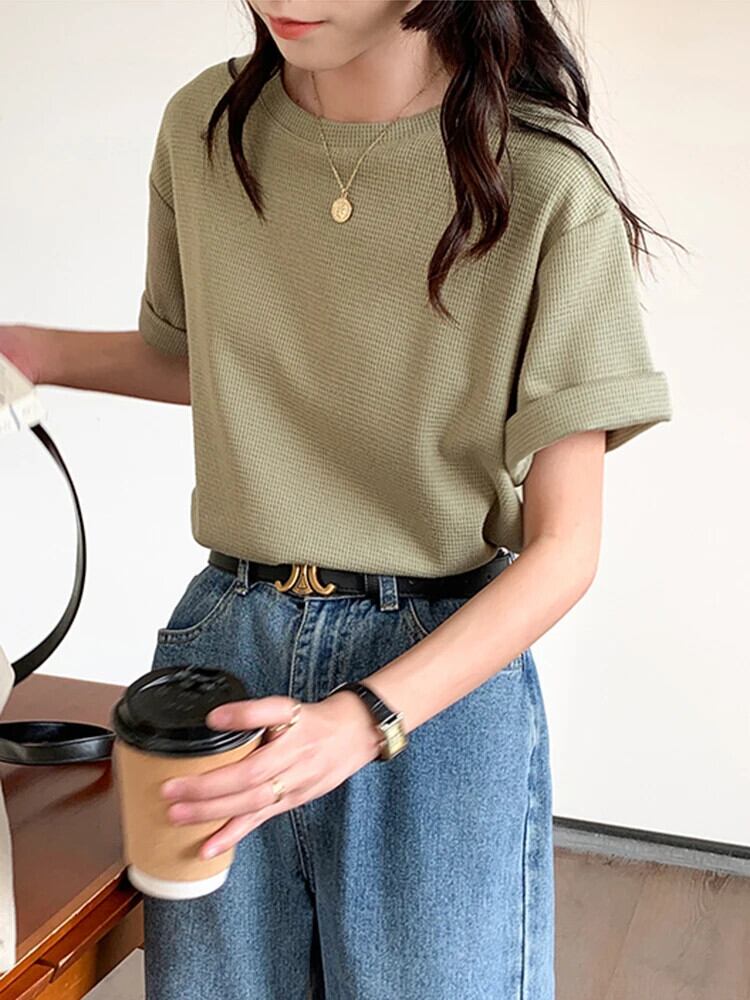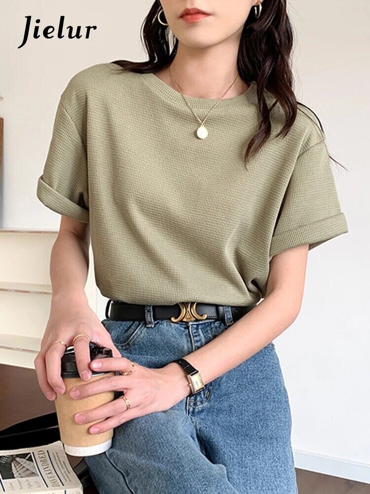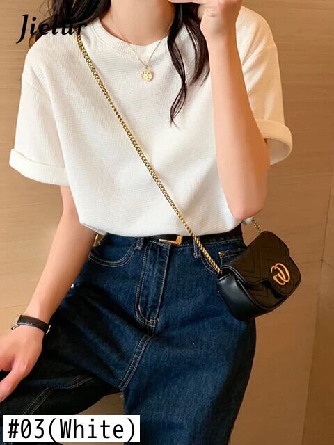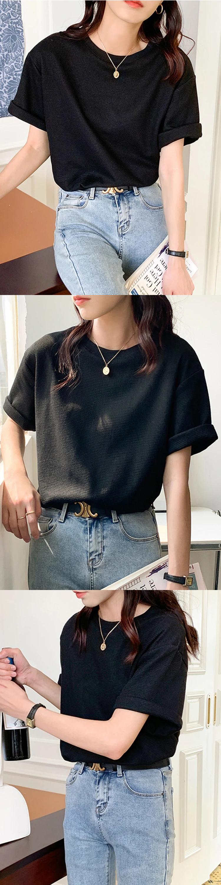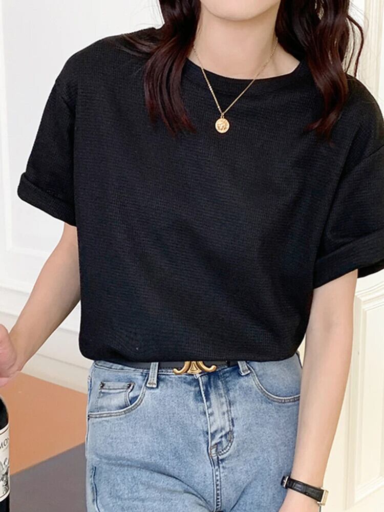 送料無料 Jielur 夏ルースクリエイティブ綿底 Tシャツ女性 O ネック Tシャツオールマッチ黒トップス女性 ブラック コットン サマー 夏物 Oネック AE12188787851770878240