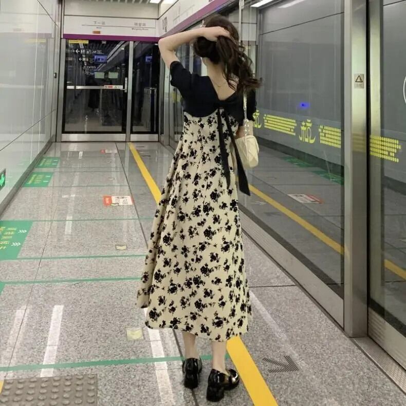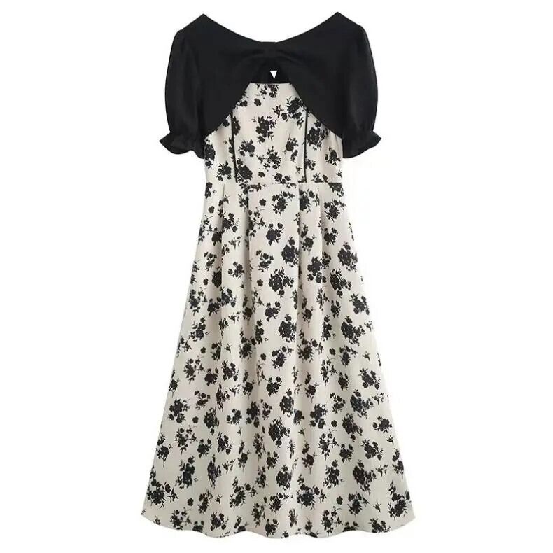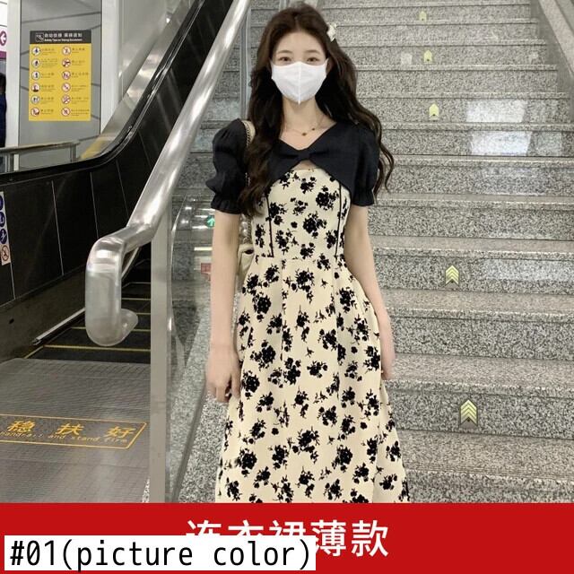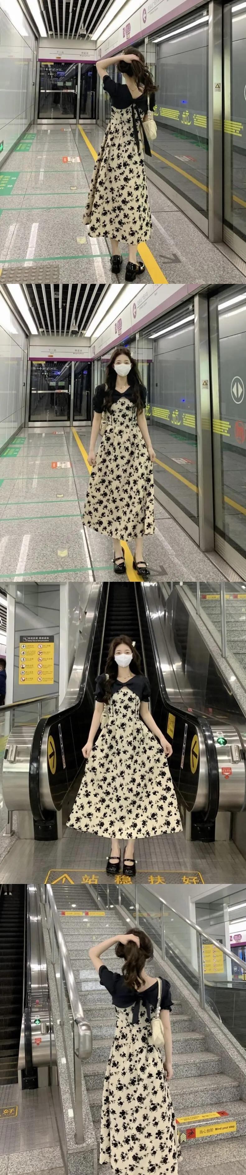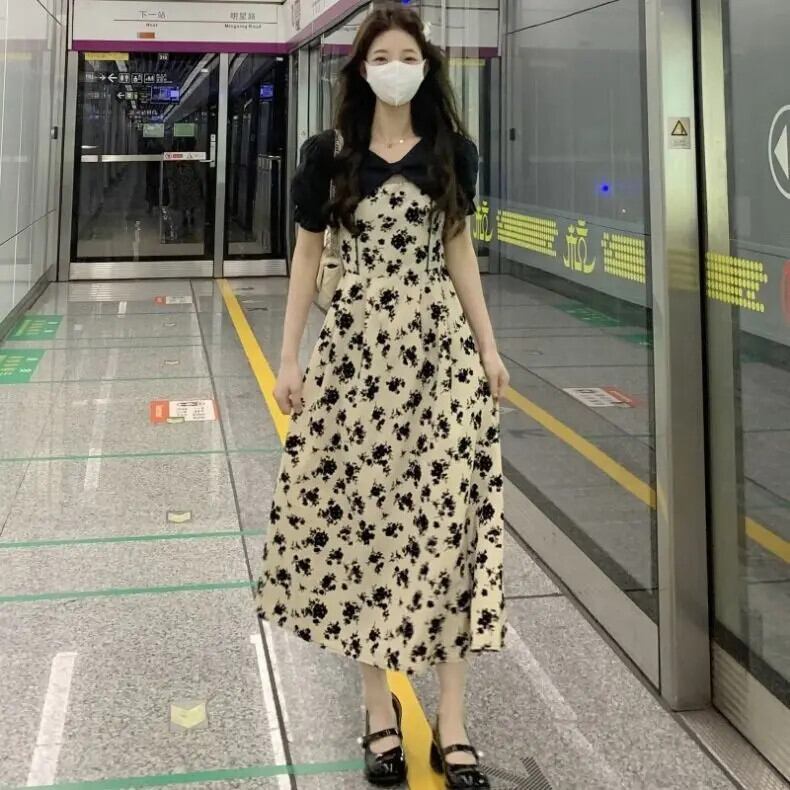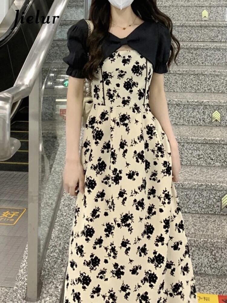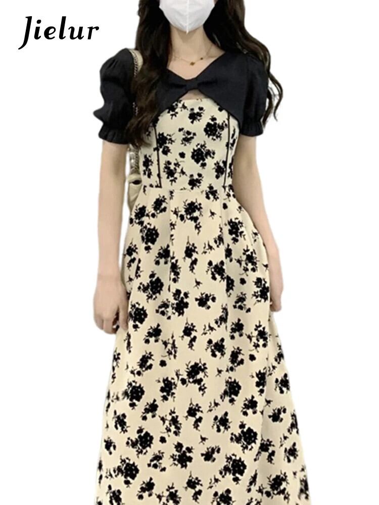 送料無料 Jielur Sweet Chicly 女性ドレスフレンチスリムサマー女性ドレス V ネックシフォンパフスリーブドレス 大人ガーリー スウィート キュート カジュアル 夏物 Vネック AE12188787822262713777