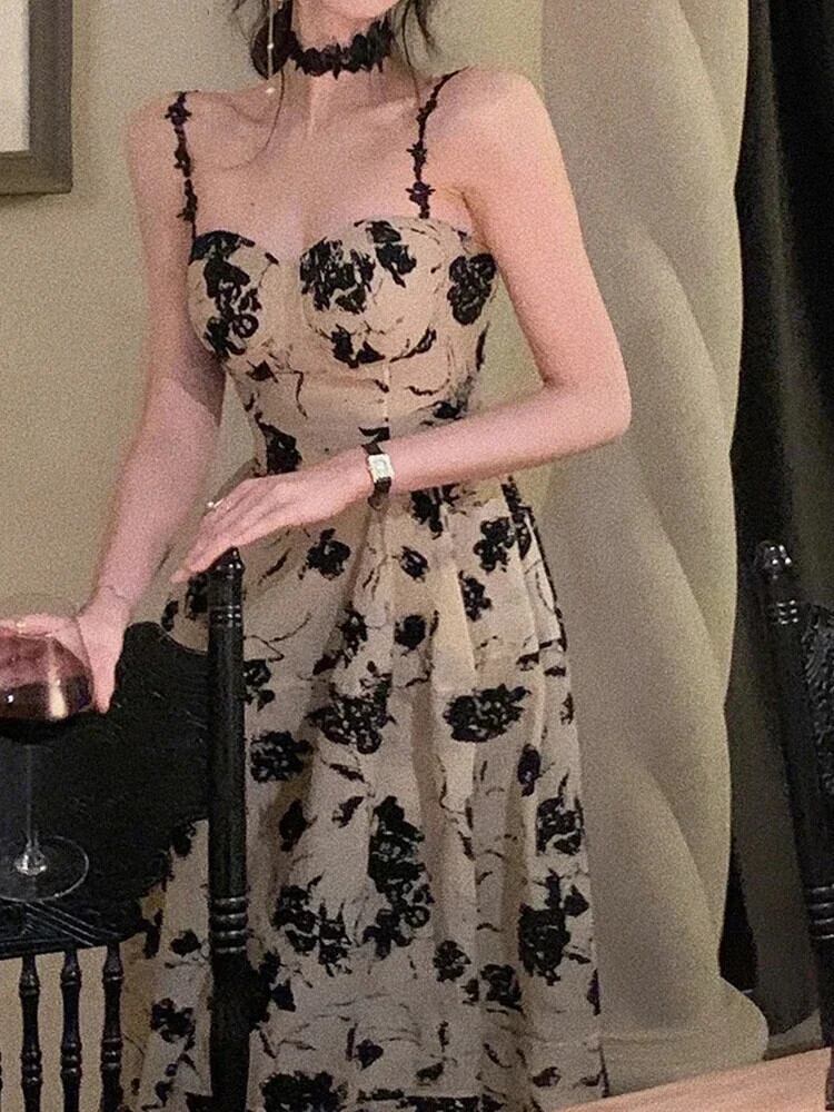 送料無料 女性のレトロプリントセクシーなミニドレスのバージョン夏のイブニングパーティー甘い女性ノースリーブドレス 大人ガーリー スウィート キュート カジュアル サマー 夏物 AE12188787810959158530