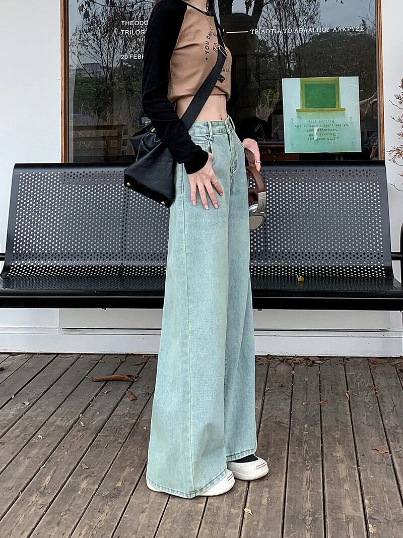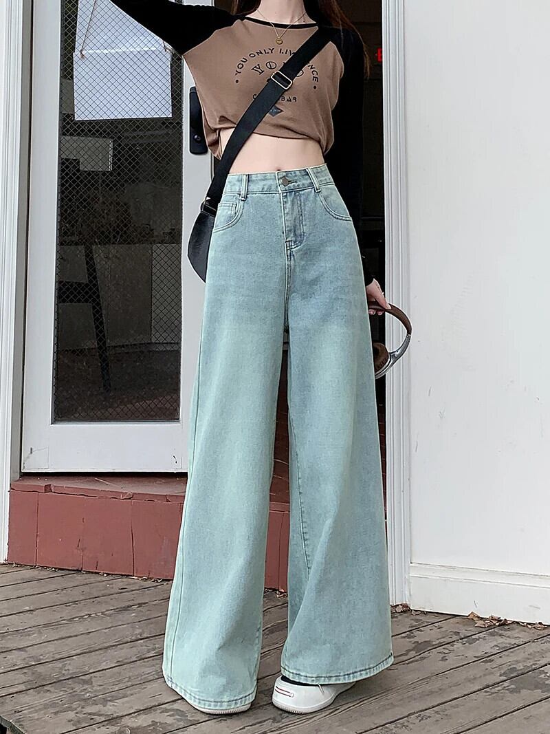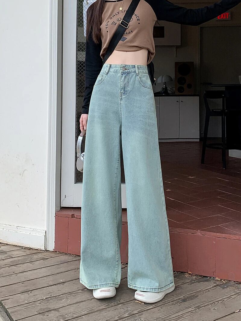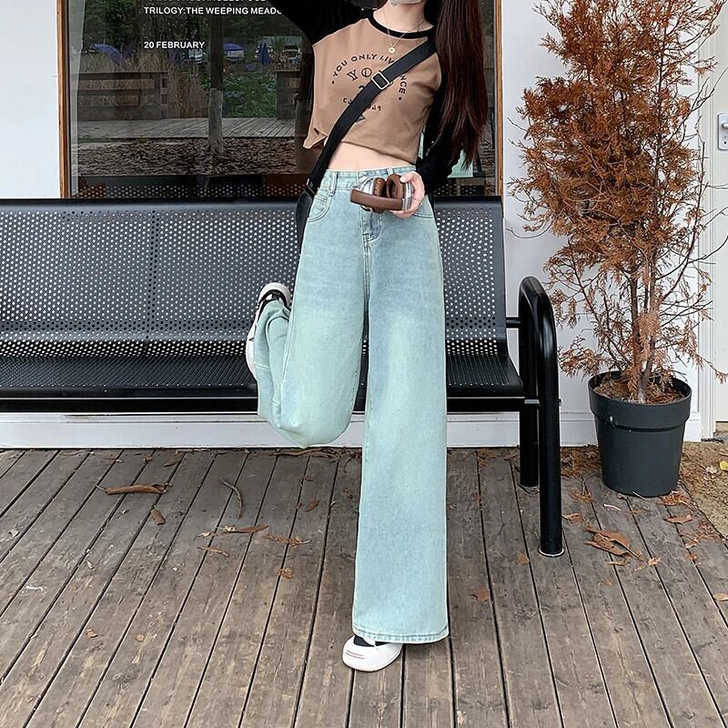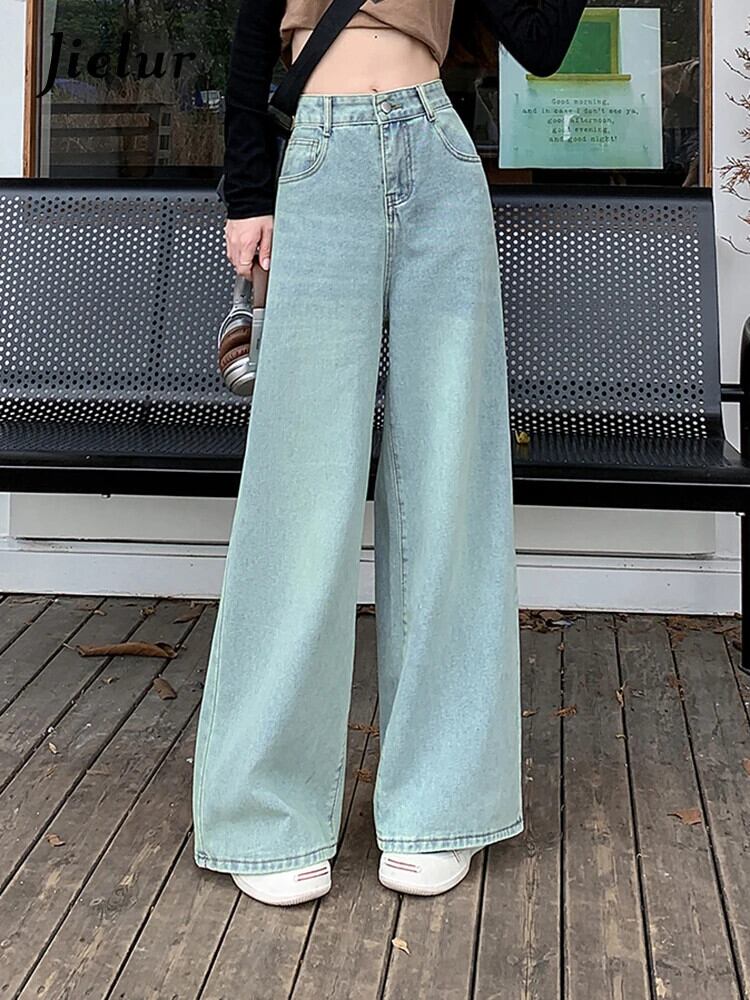 送料無料 Jielur ブルーウエストルーズスリムジーンズ秋ストレートシックリーポケットシンプルな全身女性ジーンズ オータム 秋物 AE12188787892166941992