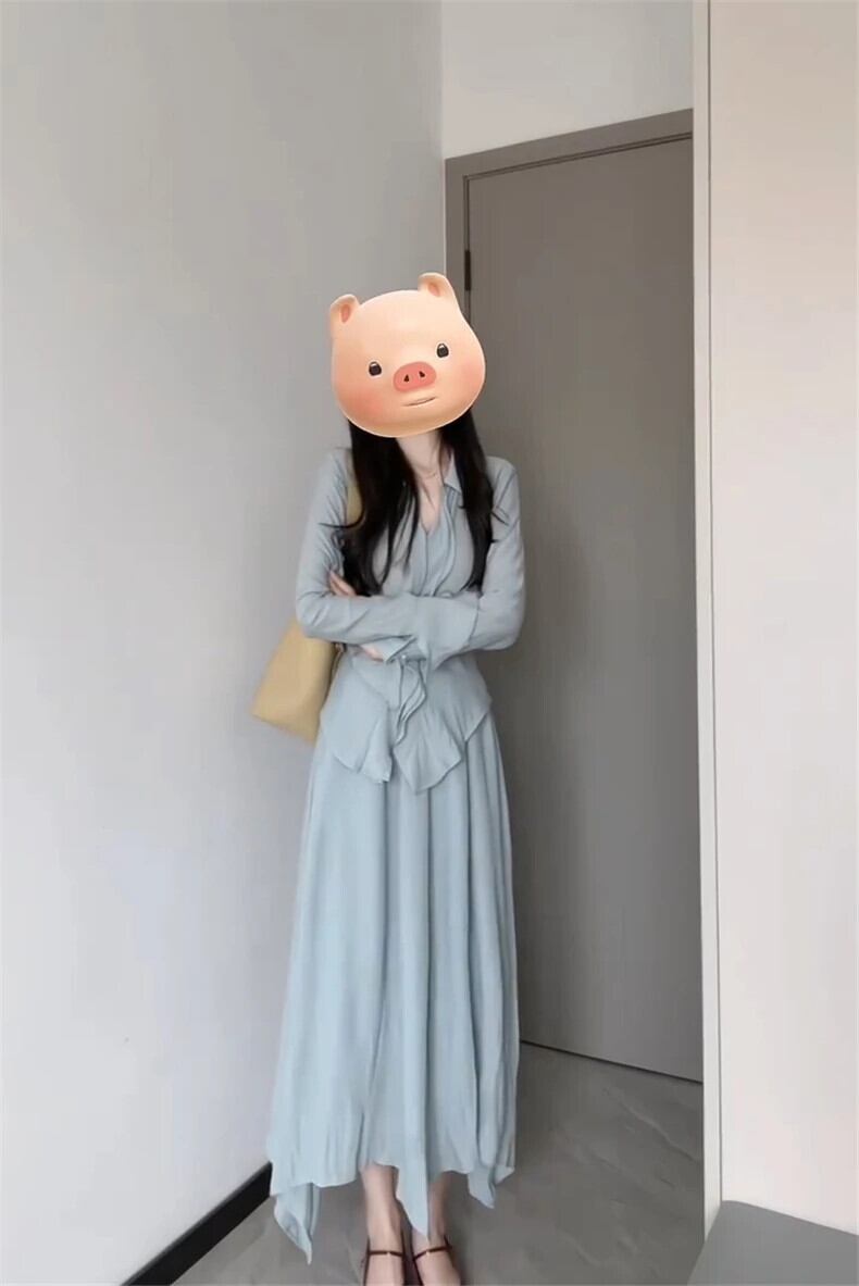 送料無料 Jielur ツーピース春無地女性ドレスセットフレンチルーズ女性ドレスセットシンプルなベーシックストリートセット スプリング 春物 ソリッドカラー AE12188787861367441997