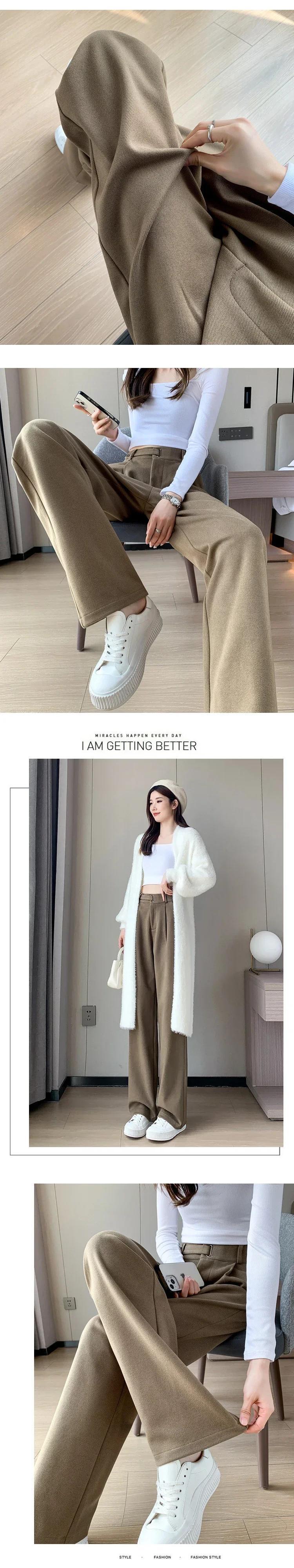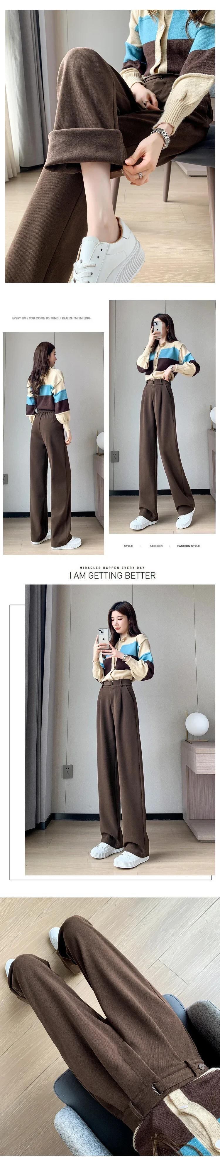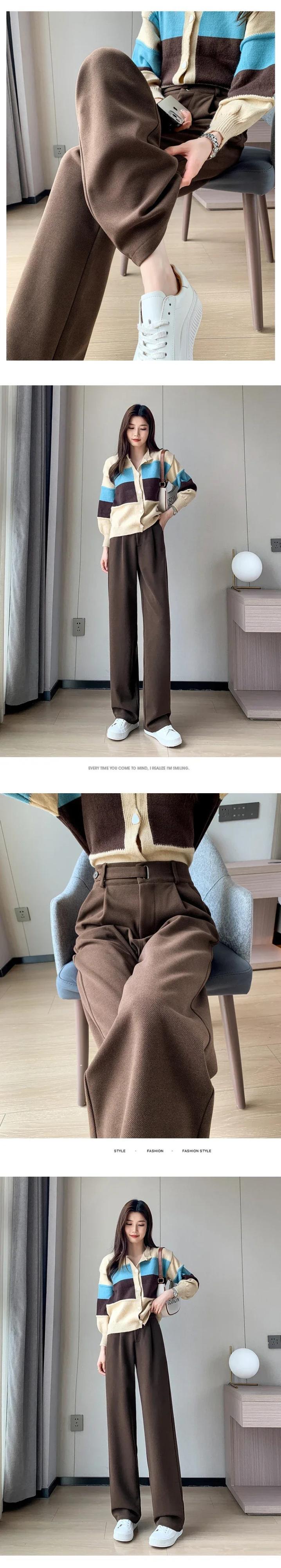 送料無料 ユニークなボタンが付いたソリッドカラーのレディースワイドレッグパンツ、スリムフィットで厚くてゆったりとした冬のロングパンツ ウィンター 冬物 ワイドパンツ AE1218878789369093318