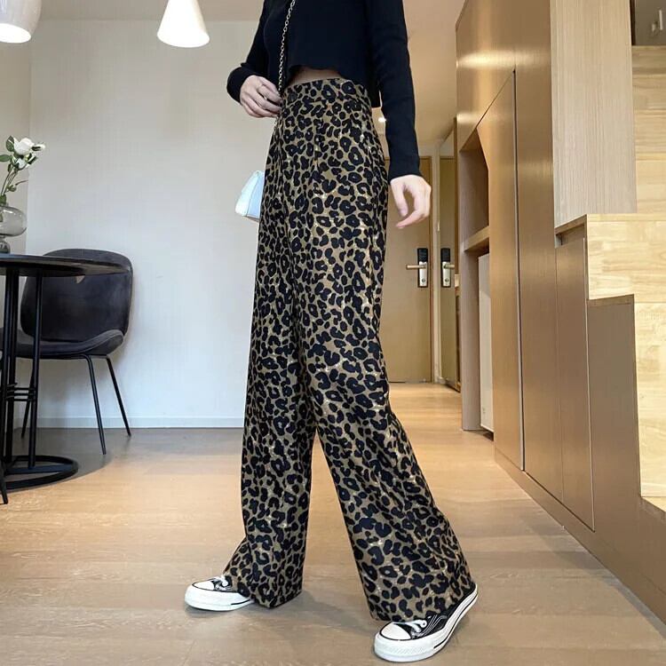 送料無料 Jielur ヒョウウエストの女性のパンツヴィンテージ Y2K パンツヤングストリートヒップホップワイドレッグパンツ ワイドパンツ ビンテージ AE12188787816940336099