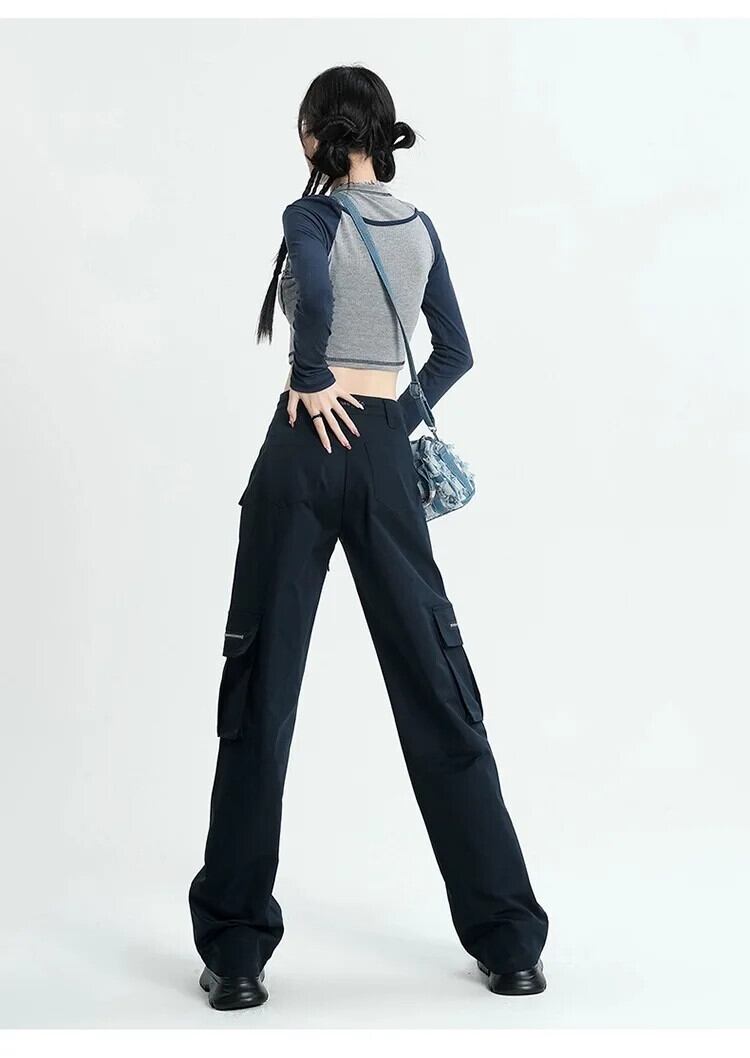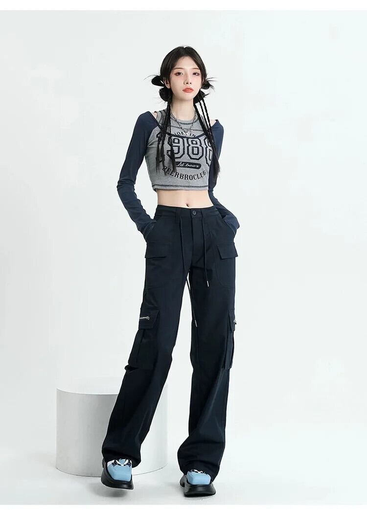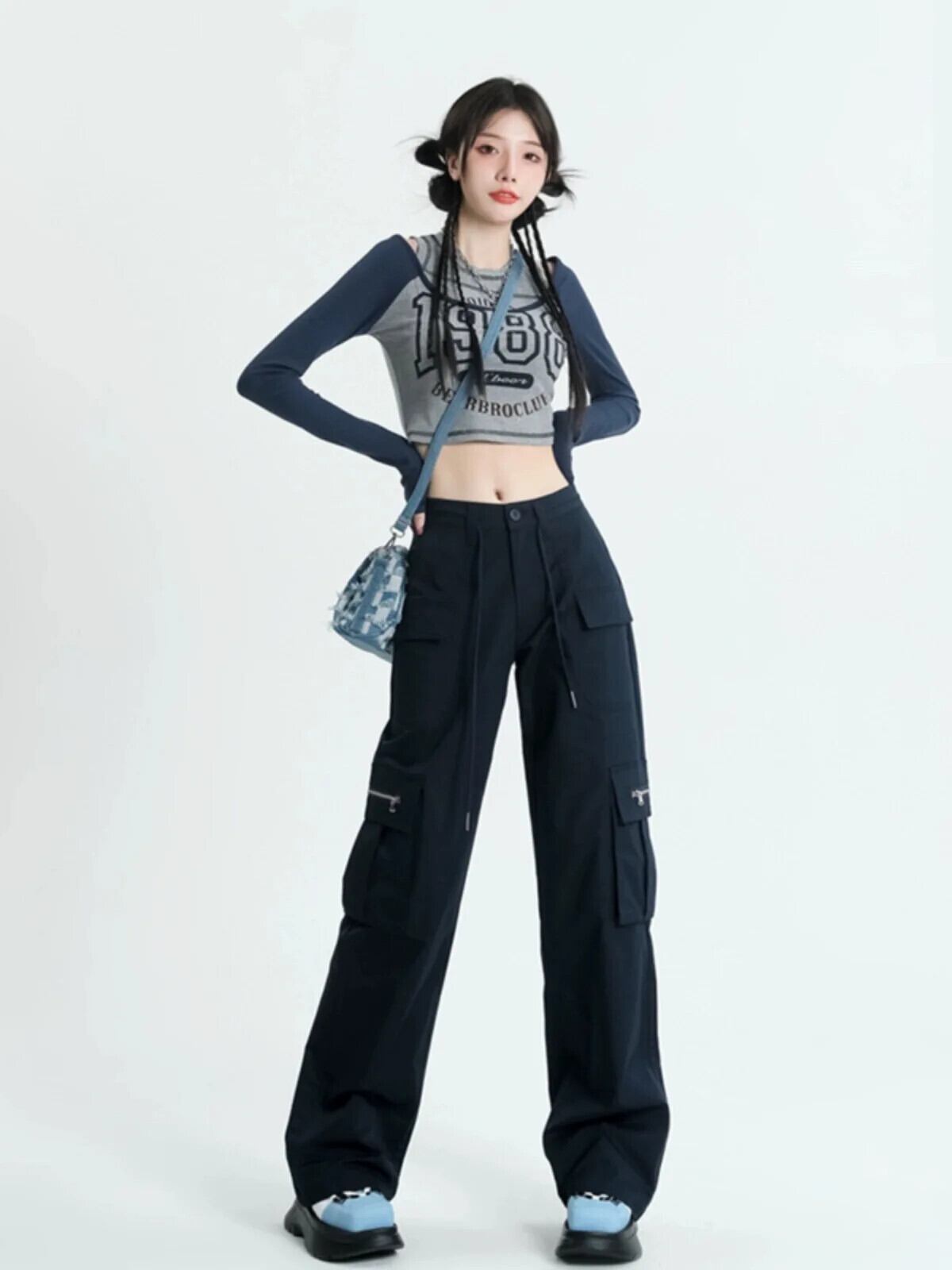 送料無料 Jielur 秋スタイルウエストストレートジーンズ女性ルーズアメリカンジーンズストリートスリムカーゴ女性パンツ オータム 秋物 AE12188787872111314280