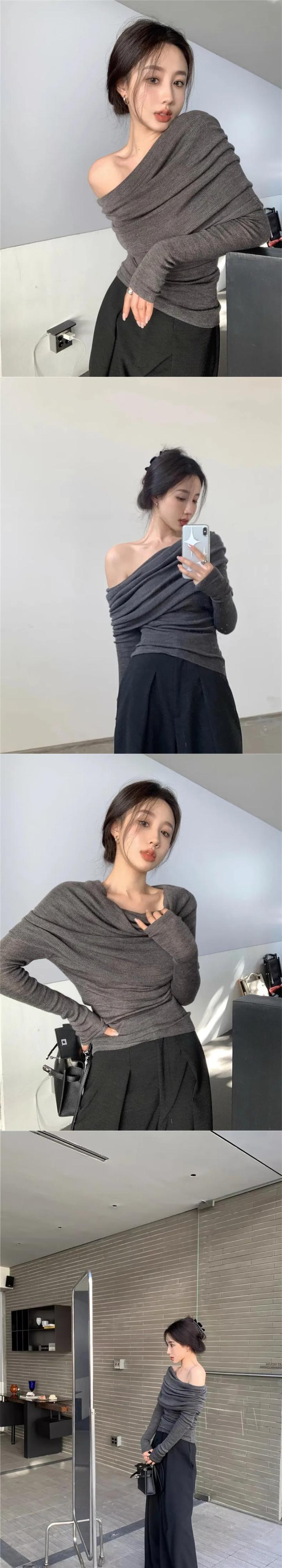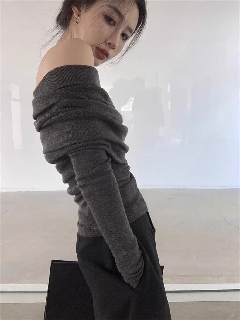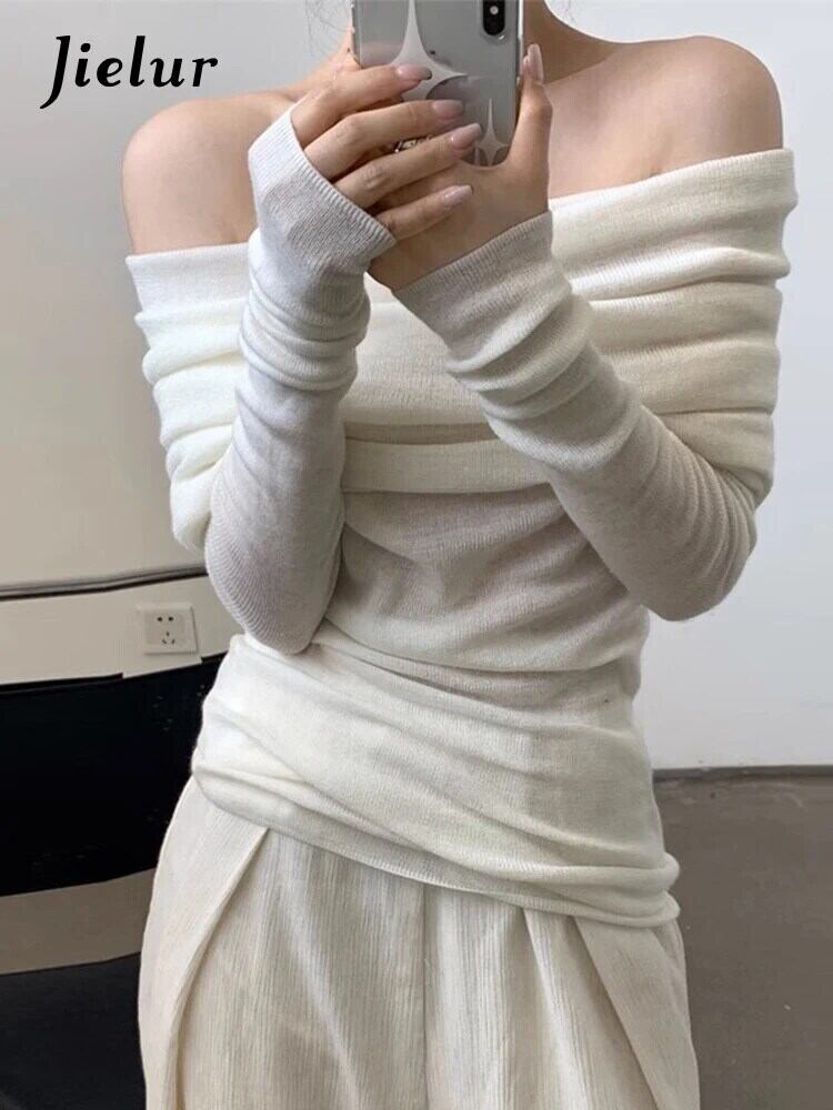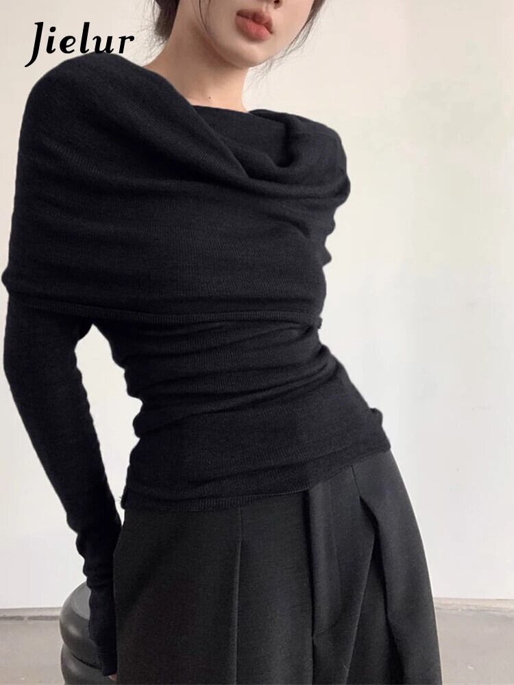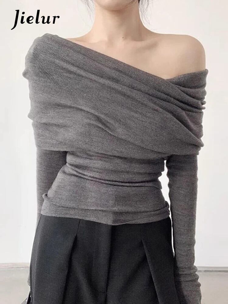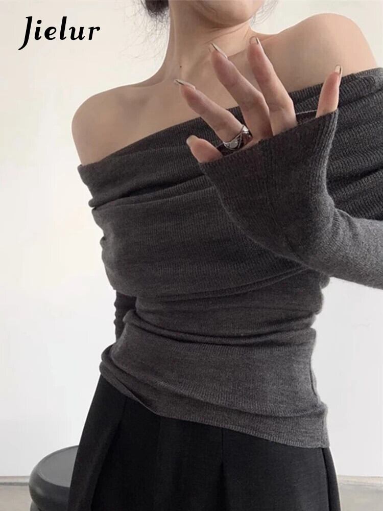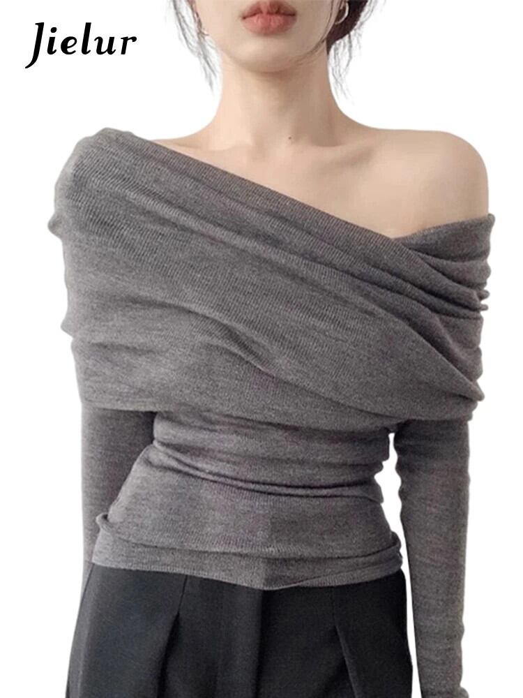 送料無料 Jielur 秋無地スリム女性プルオーバー緩いセクシーな甘いプルオーバー女性ダークグレー白黒ピンクニットトップ ホワイト ブラック 大人ガーリー スウィート キュート カジュアル オータム 秋物 ソリッドカラー AE1218878789859834270
