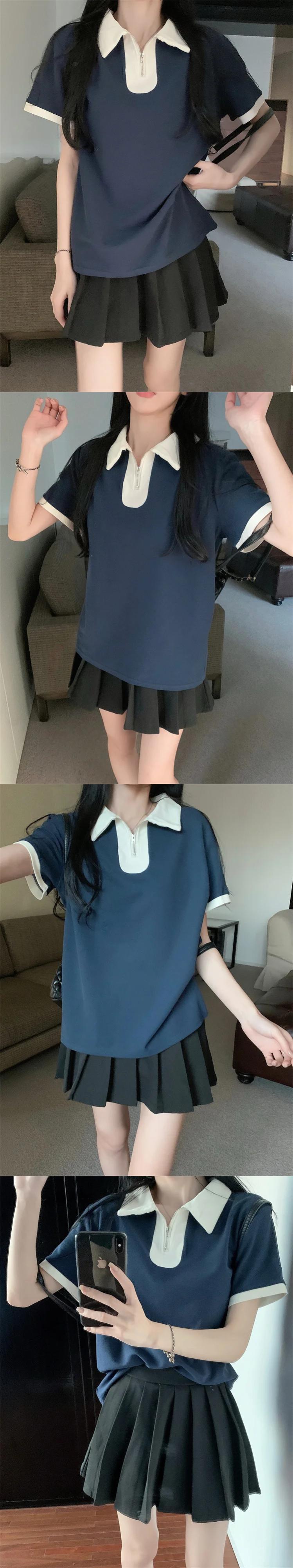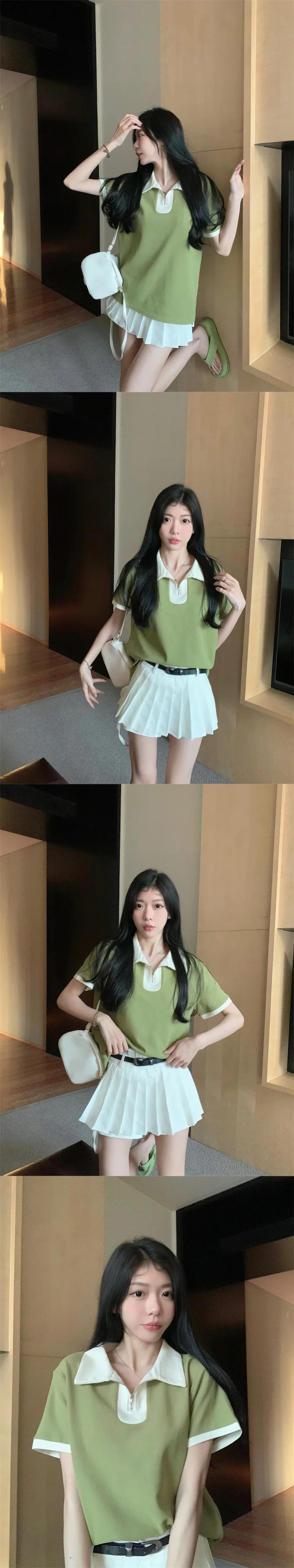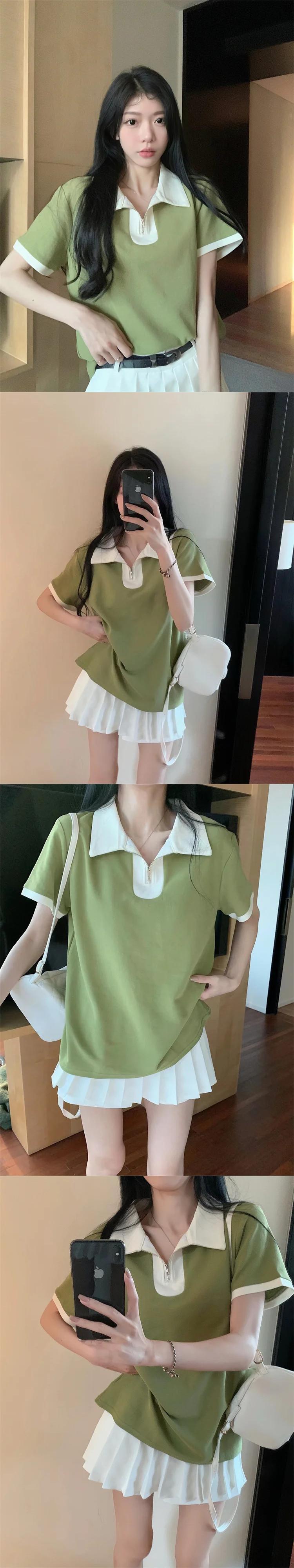 送料無料 Jielur 夏コントラストカラースリムレディース Tシャツルーズストリート Tシャツ黒紫アプリコットポロネックトップ ブラック サマー 夏物 パープル AE121887878472658332