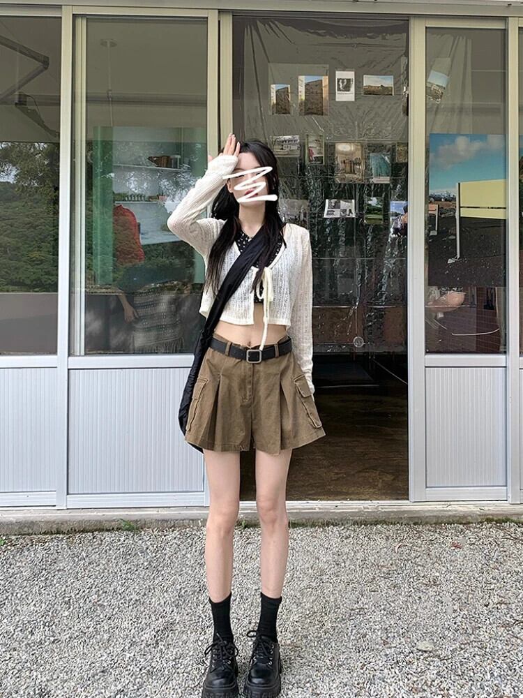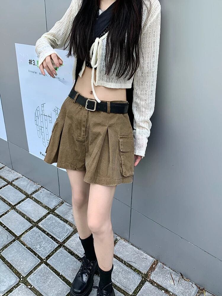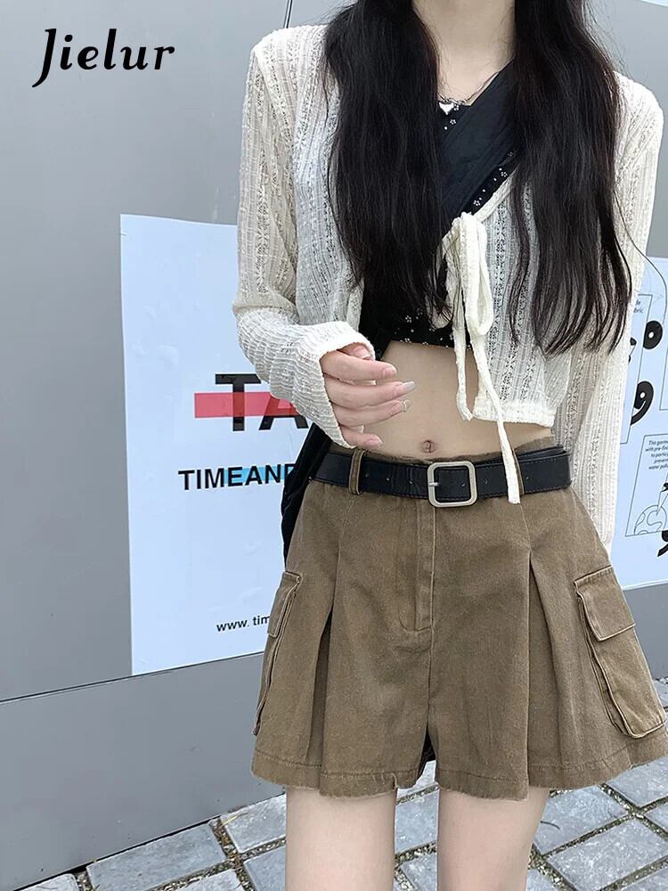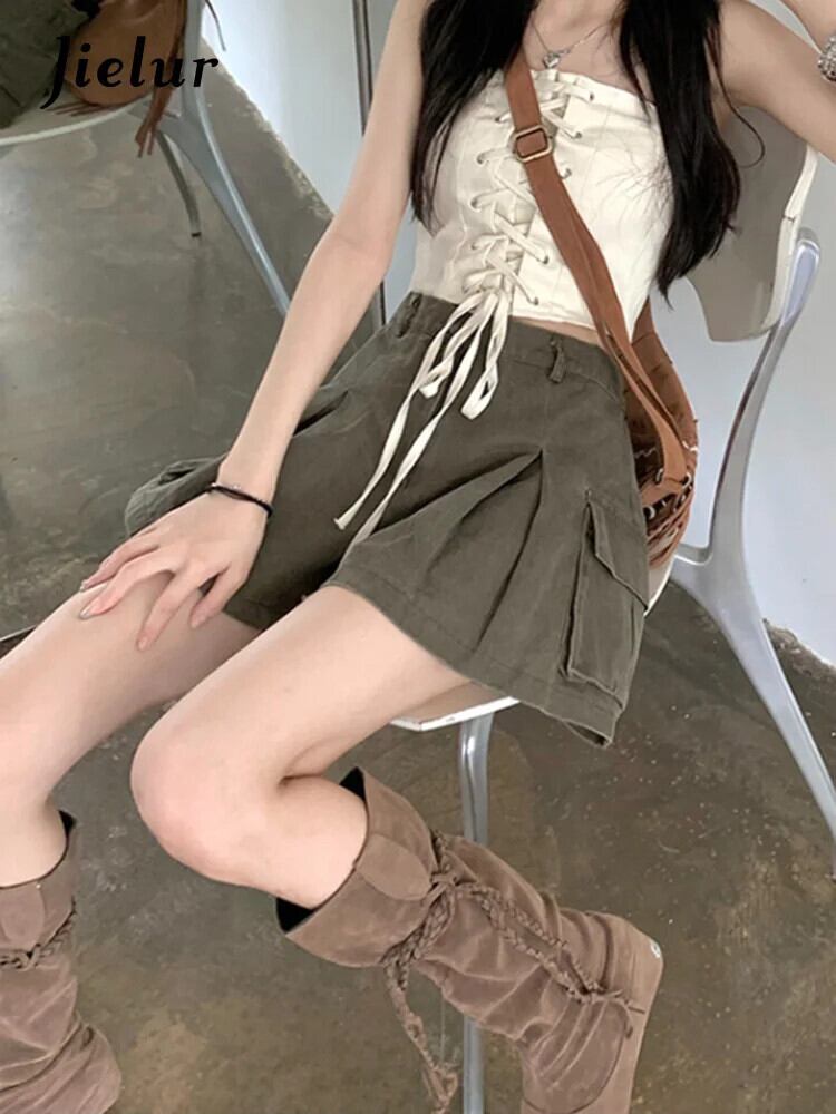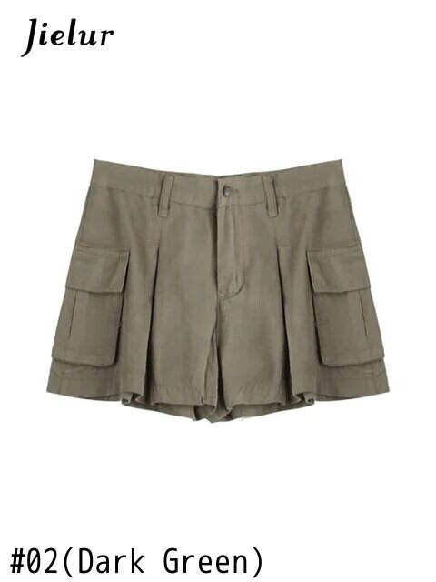 送料無料 Jielur ウエストショートパンツ女性スタイルヴィンテージカーゴパンツ暑い夏のストリート固体だぶだぶのデニムショーツ サマー 夏物 ブルマー ソリッドカラー ビンテージ AE12188787818978352781