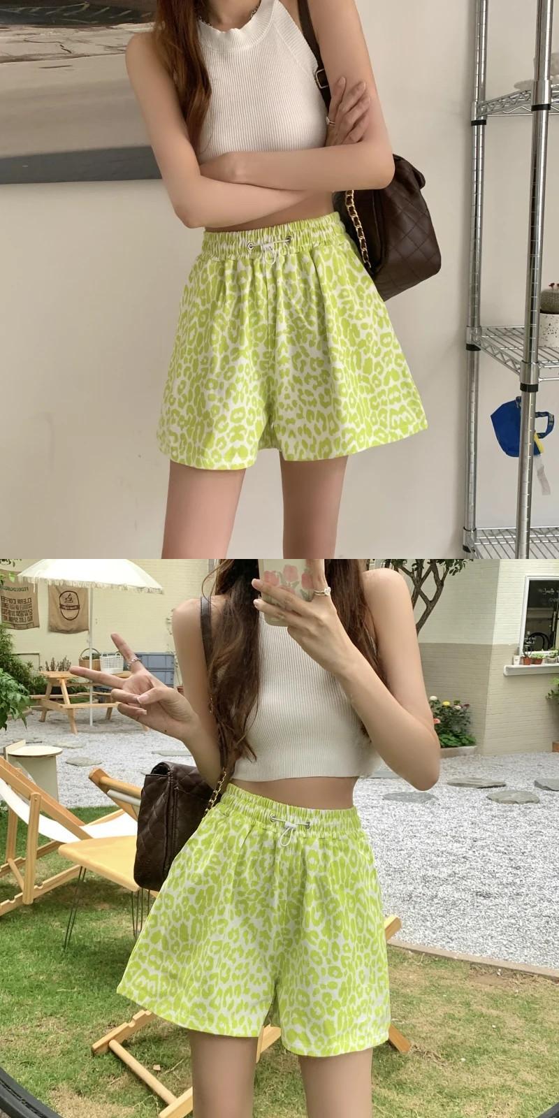 送料無料 Jielur ビーチスポーツショーツ夏ルーズワイドレッグショーツ女性ベーシックグリーンブルーヒョウショートパンツ サマー 夏物 ブルマー ワイドパンツ AE12188787847615192997