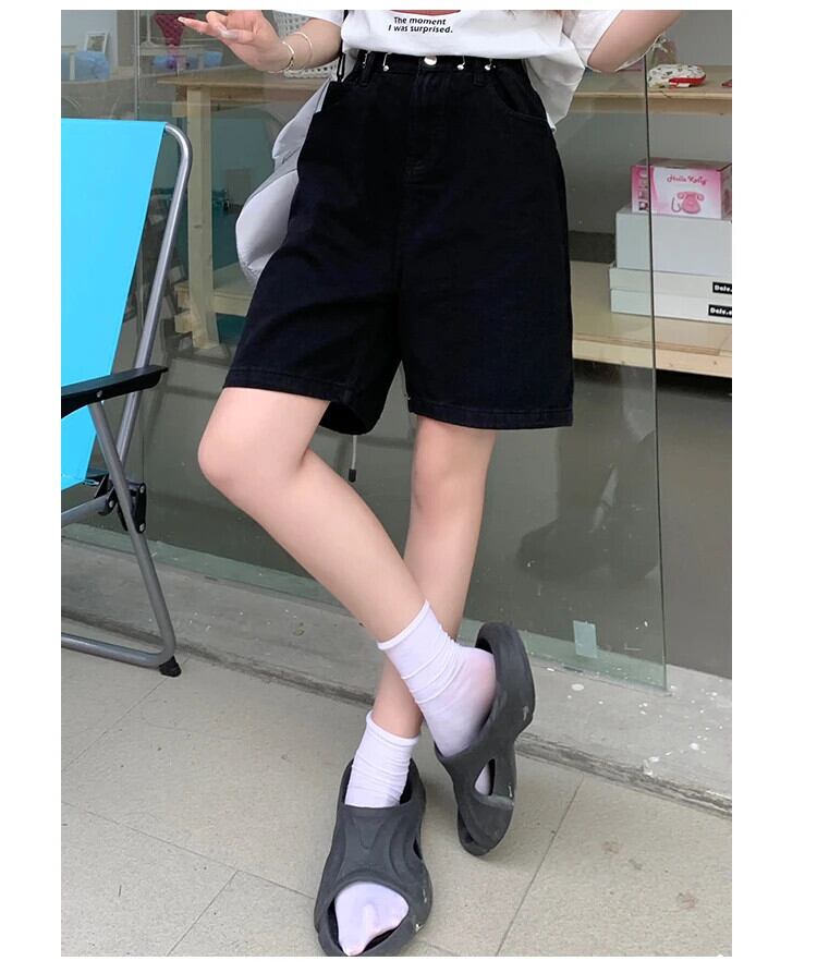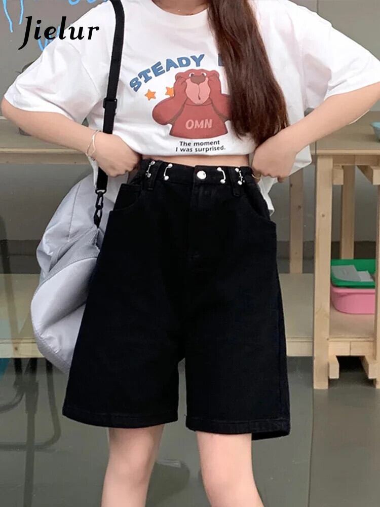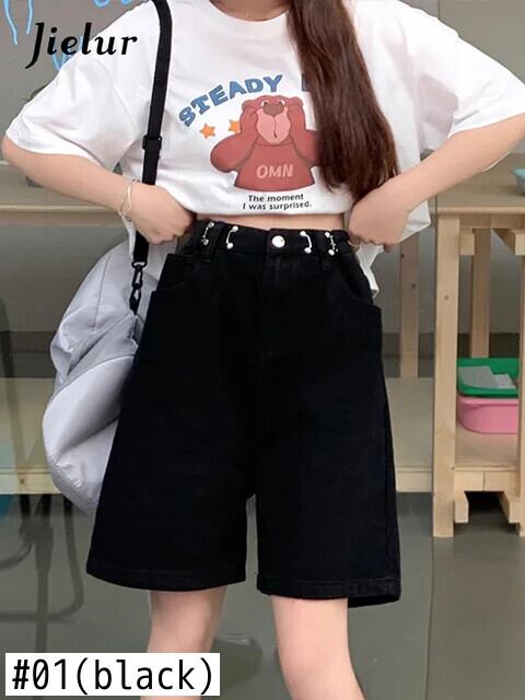 送料無料 Jielur 夏ウエストスリムデニムショーツ女性シンプルなベーシック女性ショーツブラックブルーシックなルーズショーツ サマー 夏物 ブルマー AE12188787881992180489