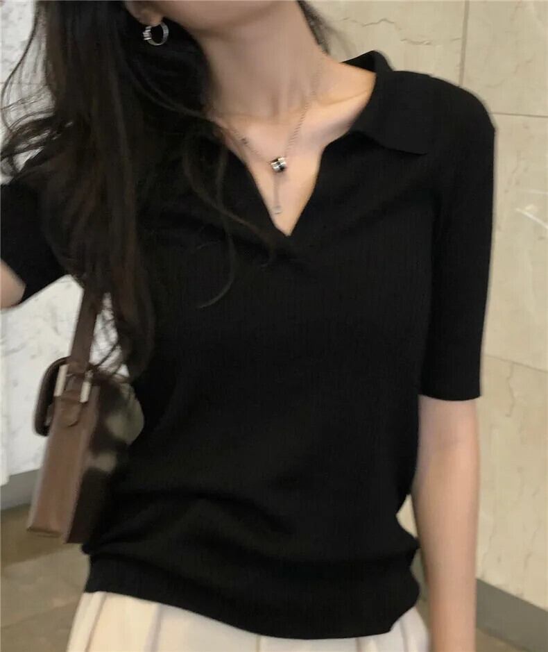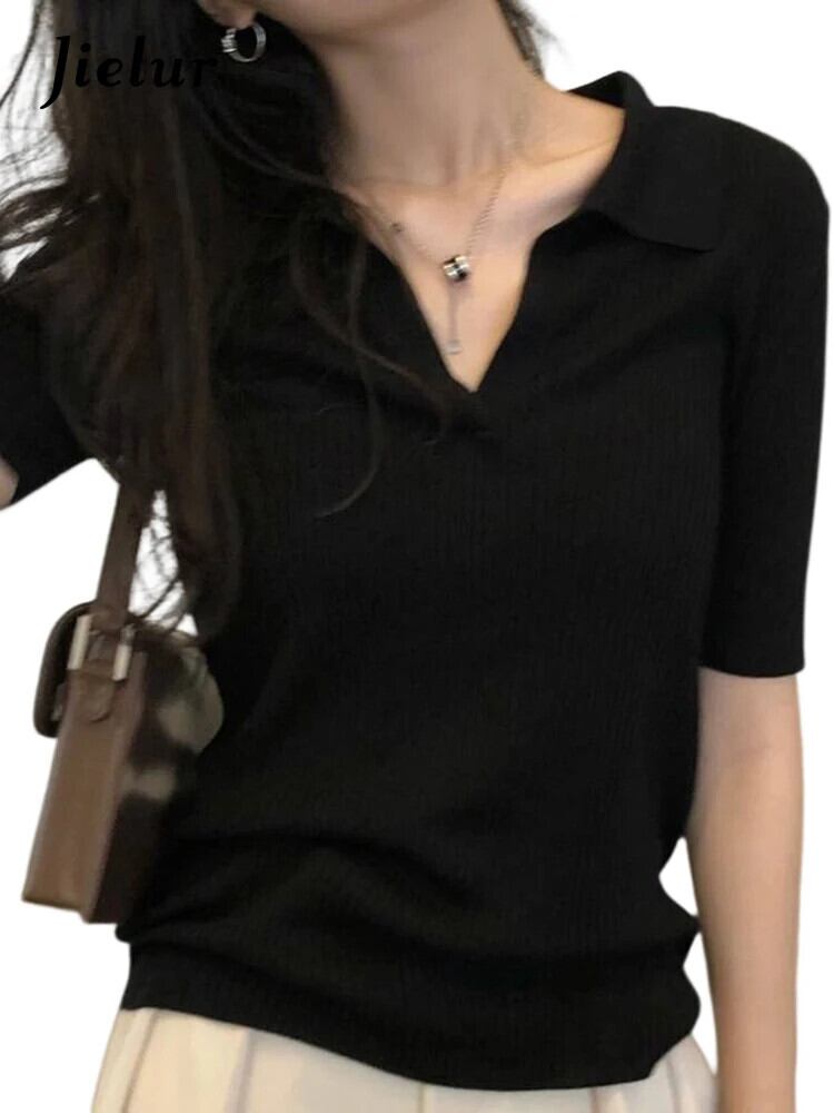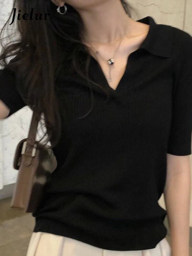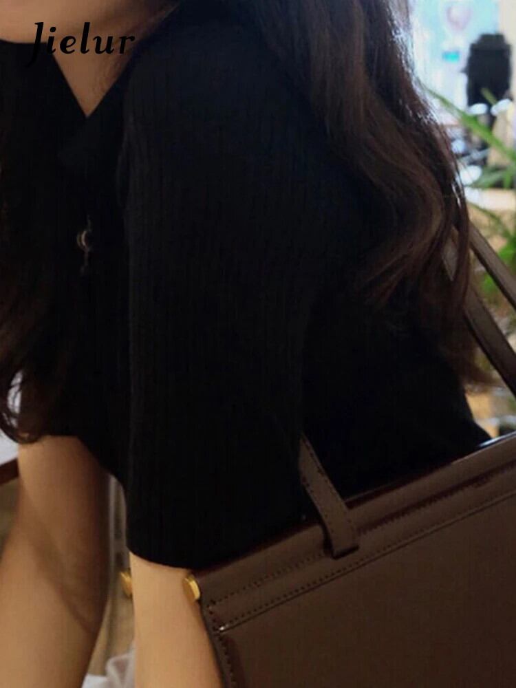 送料無料 Jielur 夏無地スリム女性の Tシャツ Casua ルーズ Tシャツ女性黒シンプルなベーシック Chicly トップ ブラック サマー 夏物 ソリッドカラー AE12188787810610343557