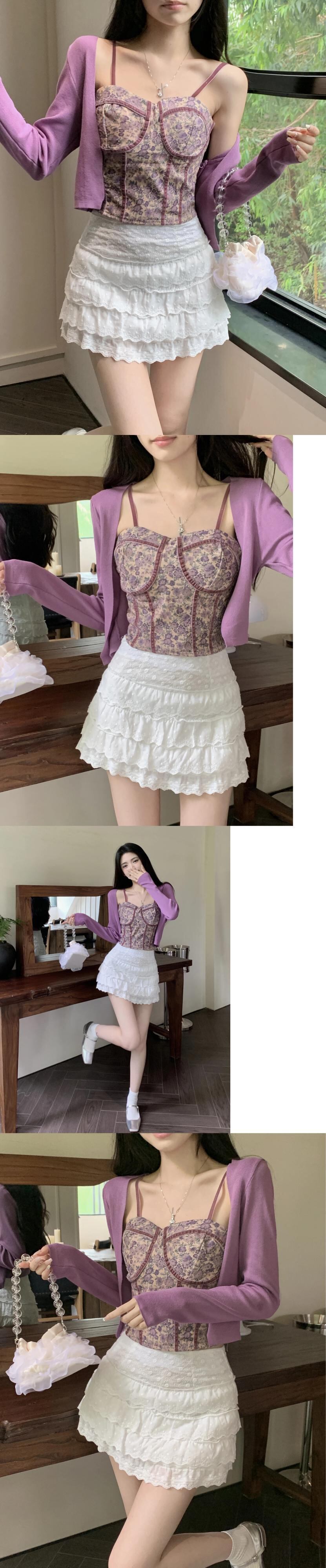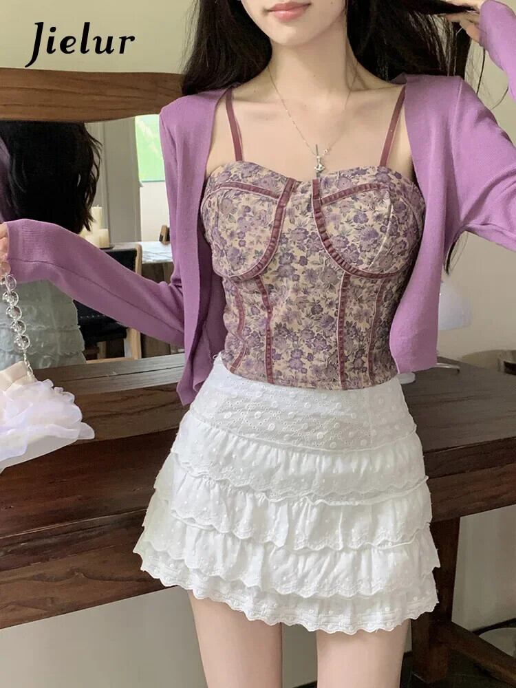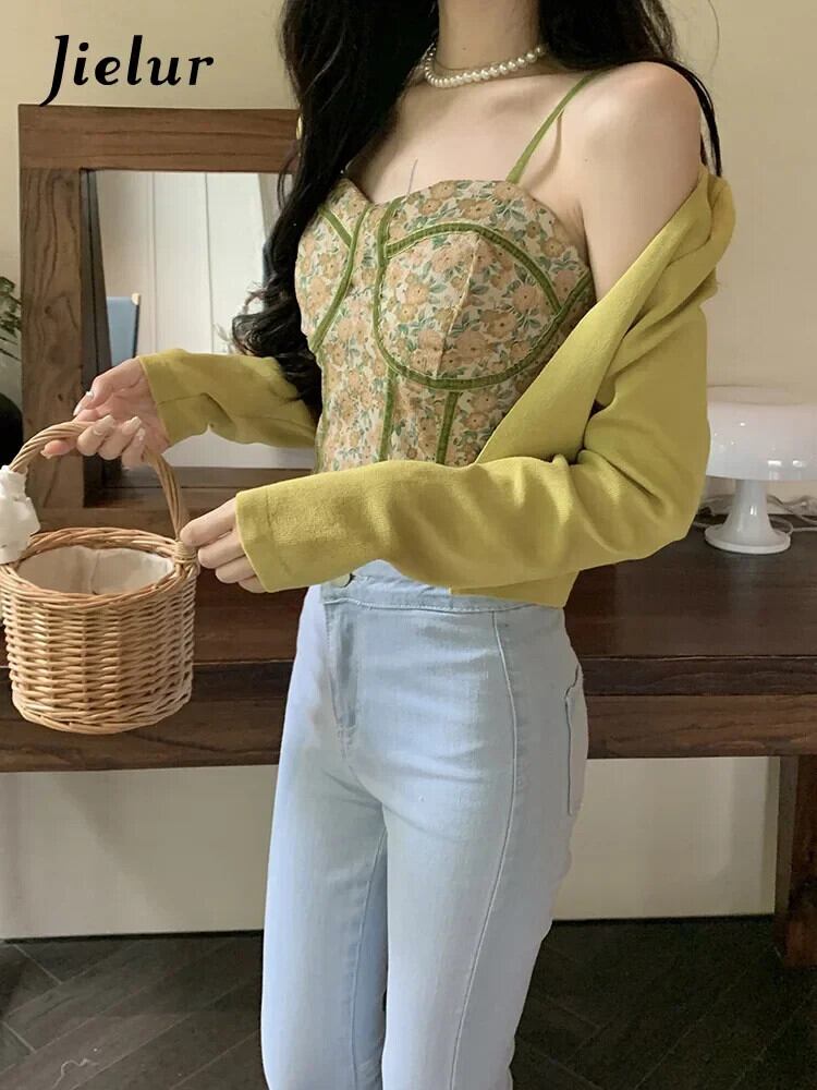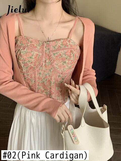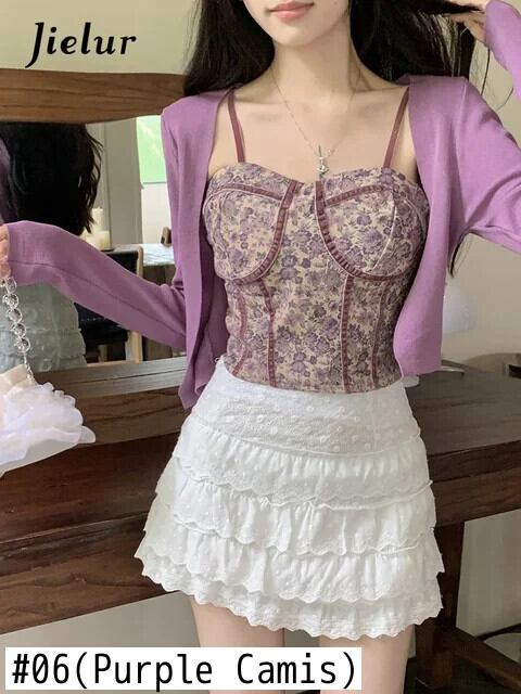 送料無料 Jielur ツーピース夏甘い花柄女性のキャミソール無地ルーズニットトップ女性シックなグリーンピンクパープルトップ 大人ガーリー スウィート キュート カジュアル サマー 夏物 ソリッドカラー AE12188787851425557986