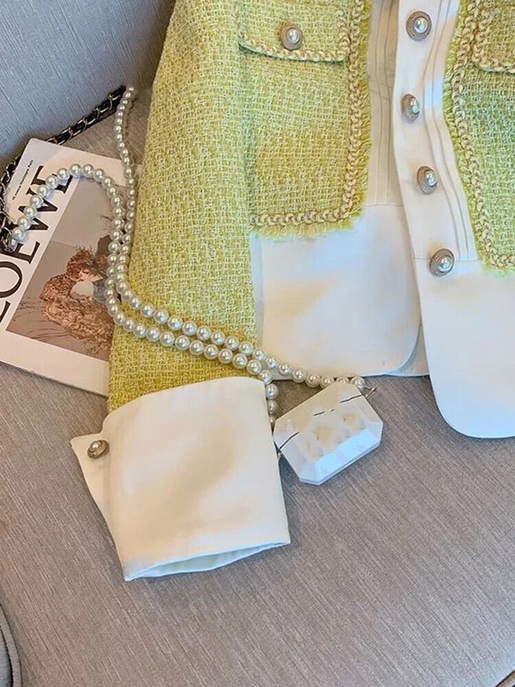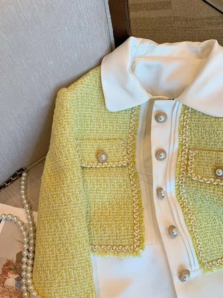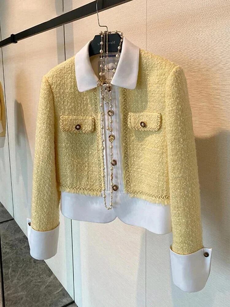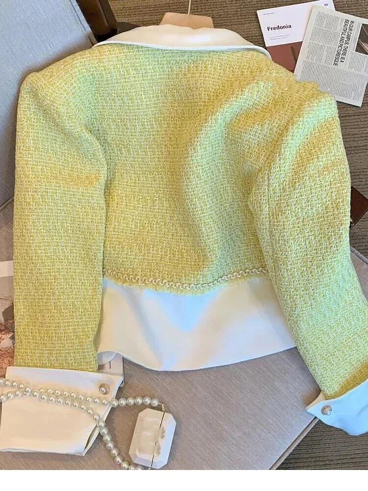 送料無料 女性生き抜くジャケットヴィンテージイエローツイードジャケットコート女性甘いスタイリッシュな冬ウールショートコート 大人ガーリー スウィート キュート カジュアル ウィンター 冬物 ビンテージ AE12188787819139736999