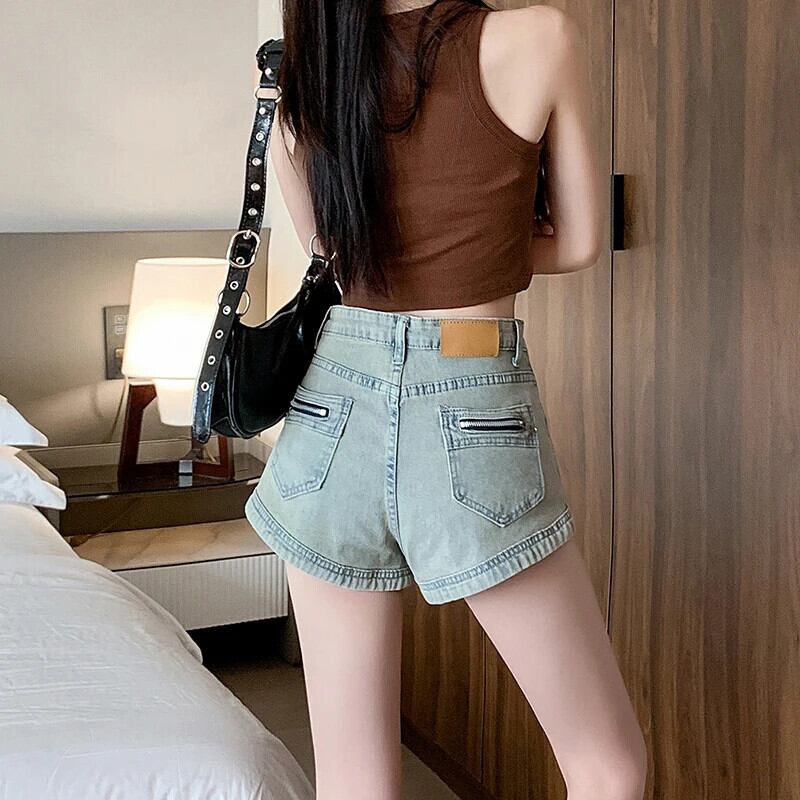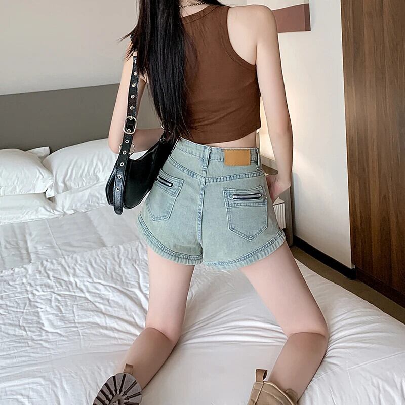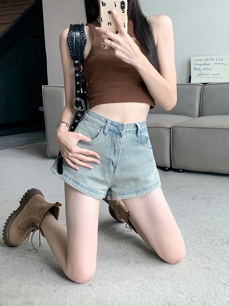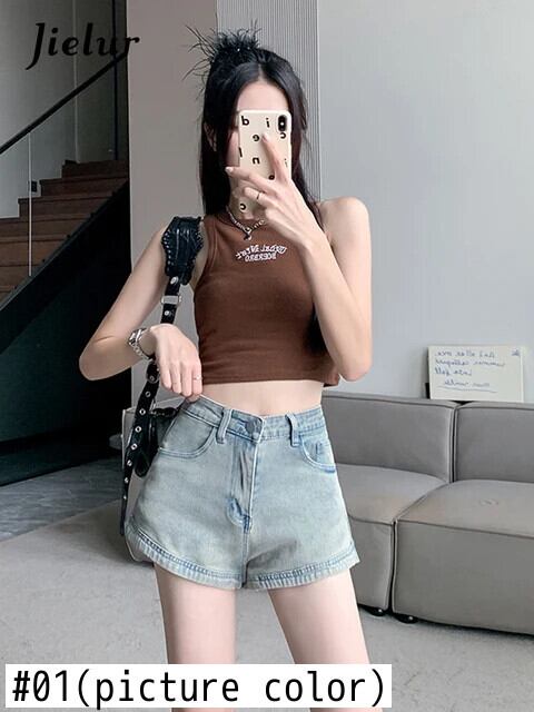 送料無料 Jielur 夏ウエストヴィンテージデニム女性ショーツセクシーな Chicly スリム女性ショーツストリートベーシックショーツ サマー 夏物 ブルマー ビンテージ AE1218878782961415378