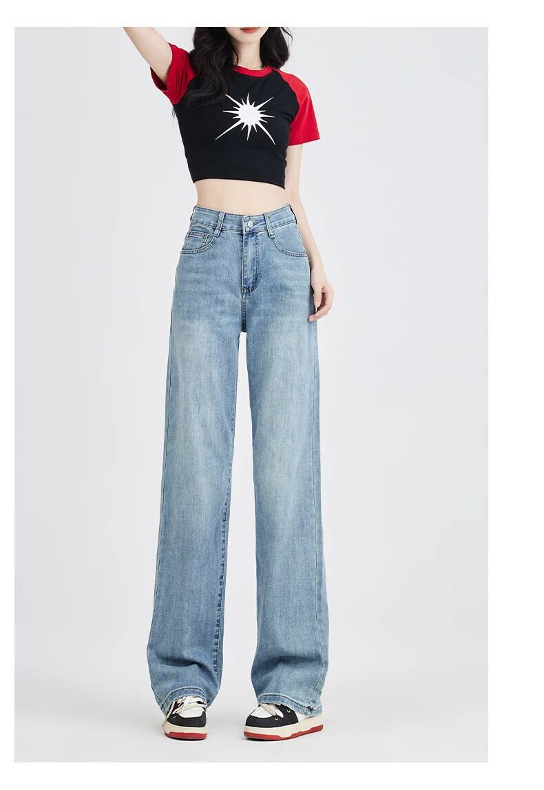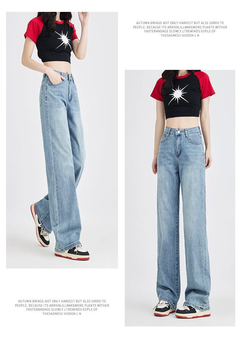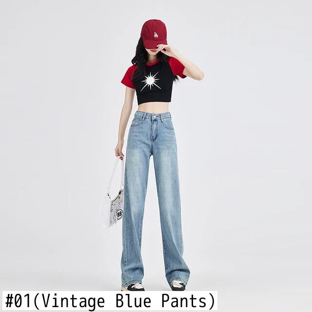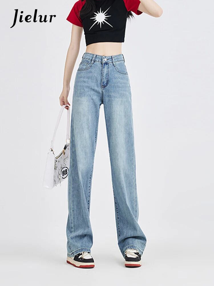 送料無料 Jielur 秋スリムストリートベーシックジーンズ女性ルーズウエスト女性のジーンズブルーヴィンテージシックなワイドレッグパンツ オータム 秋物 ワイドパンツ ビンテージ AE12188787830141043608