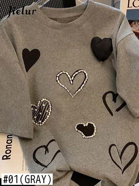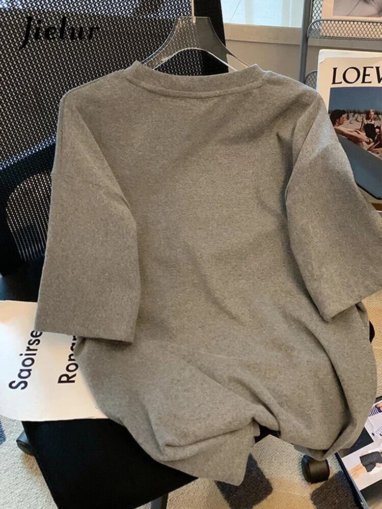 送料無料 Jielur 夏ルースレディース Tシャツベーシックスリムシック Tシャツヤンググレー 0 ネックストリート女性 Tシャツ サマー 夏物 AE12188787815201040665