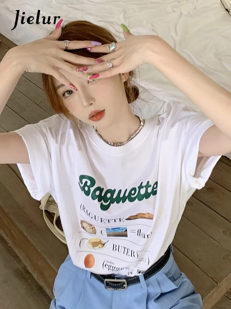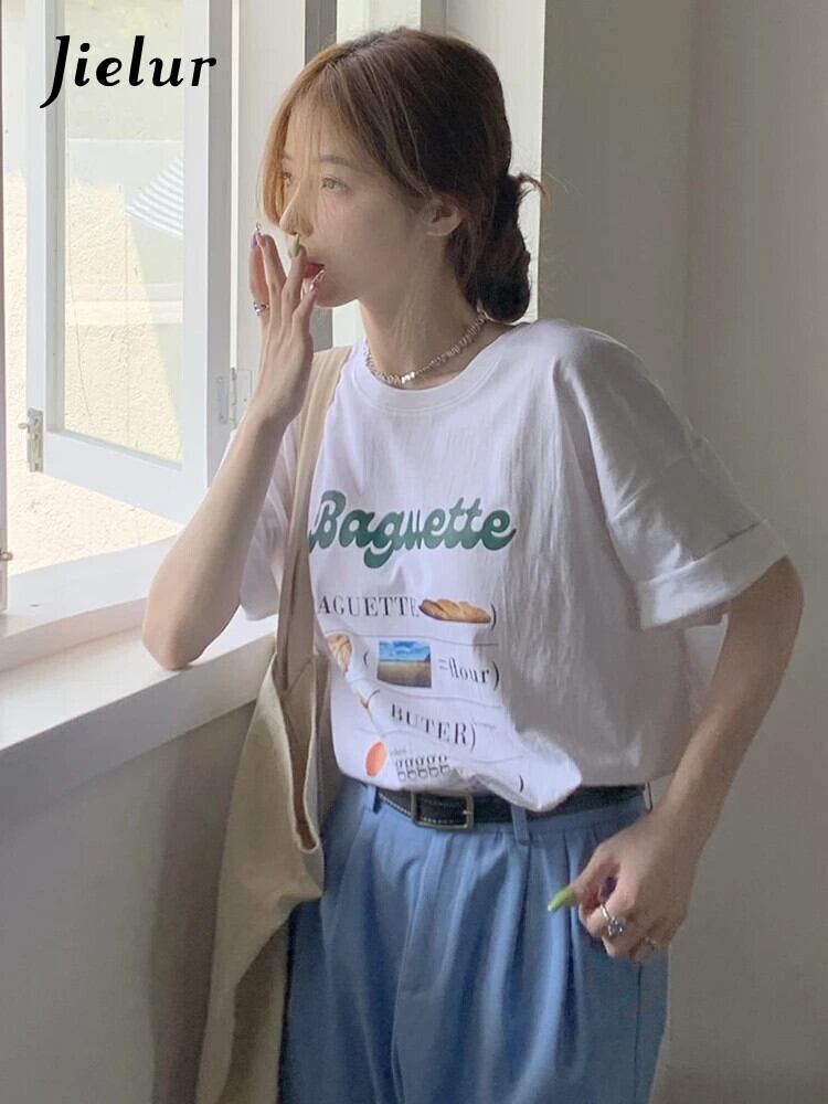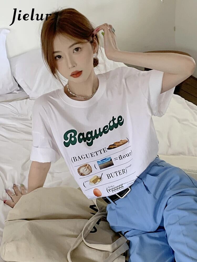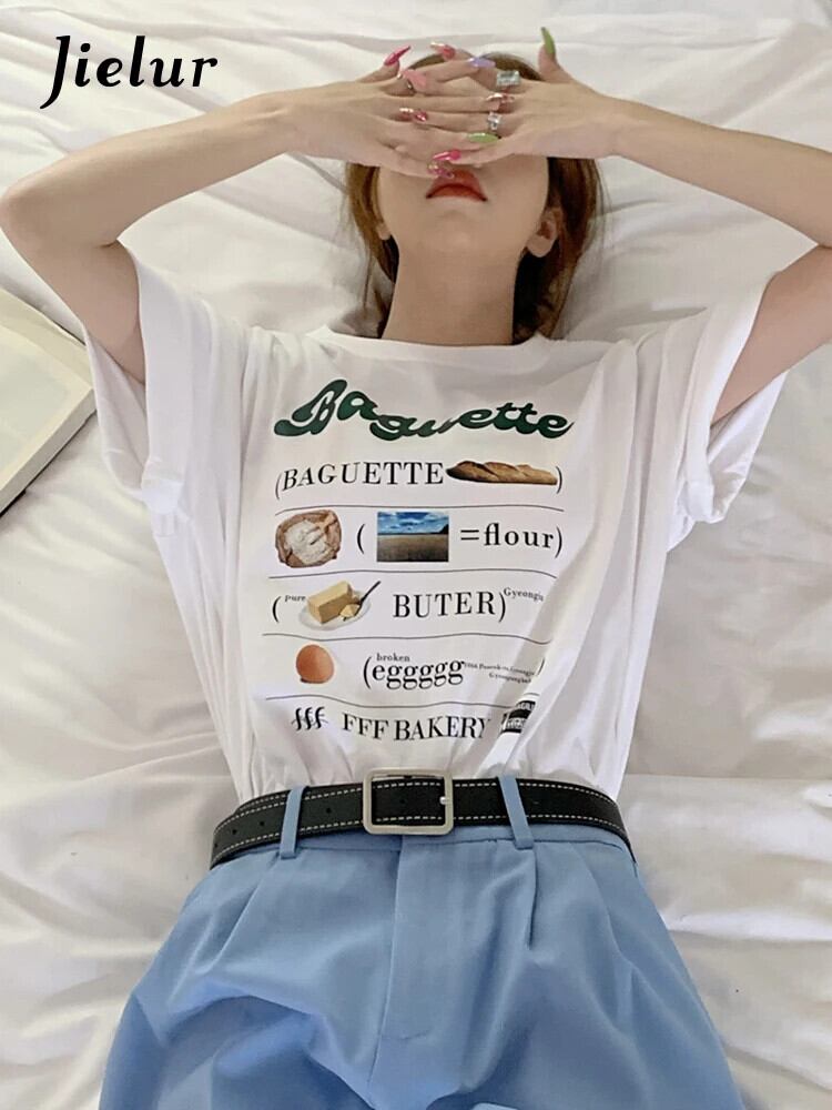 送料無料 Jielur おかしい漫画プリント Tシャツルーズ半袖 Tシャツ女性かわいいトップ Tシャツ女性原宿白 Tシャツ ホワイト 大人ガーリー スウィート キュート カジュアル AE12188787854001907921
