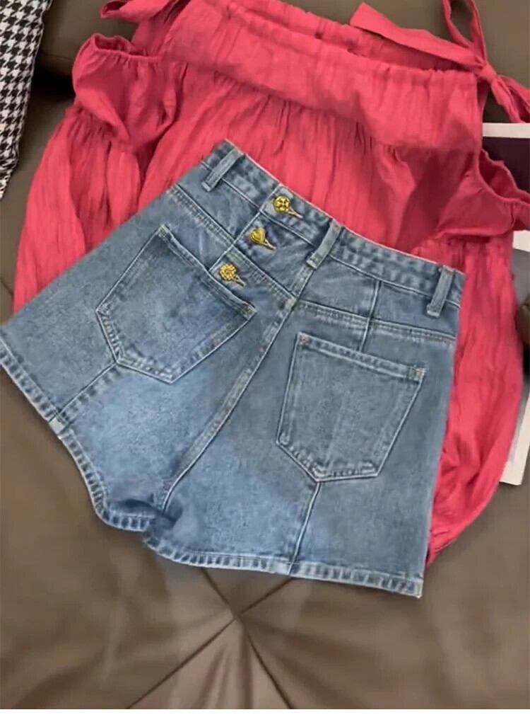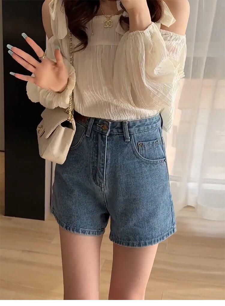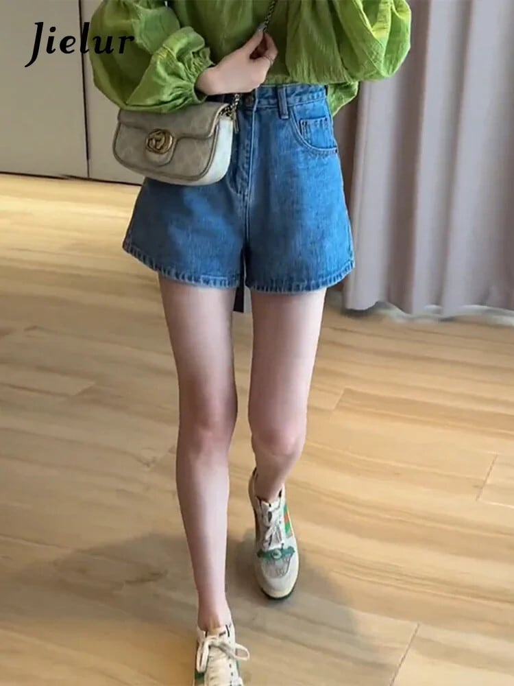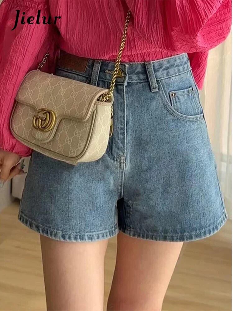 送料無料 Jielur 夏ウエストデニムショーツ女性スリムソリッドカラーの女性のショーツブルーシンプルなベーシックショーツ サマー 夏物 ブルマー AE12188787874127813597