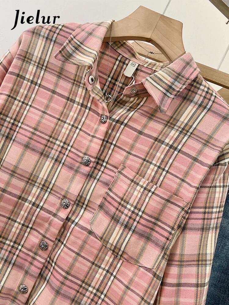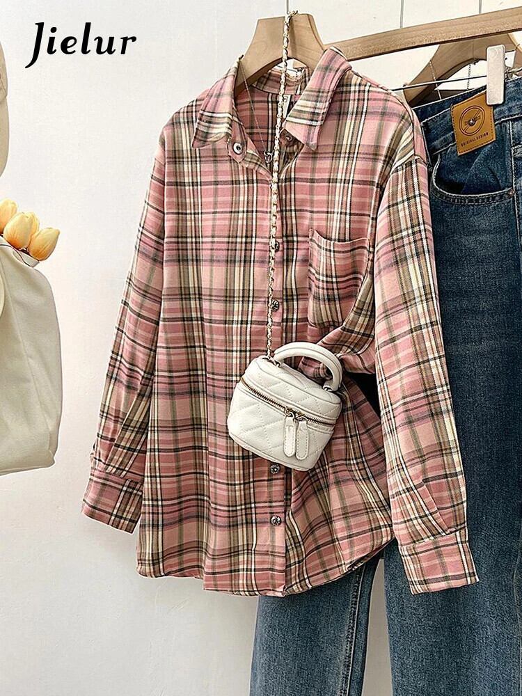 送料無料 Jielur 春アメリカンコントラストカラーの女性のシャツルーズベーシック女性シャツストリートスリム長袖トップ ロング スプリング 春物 AE12188787847733034407