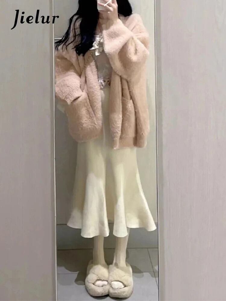 送料無料 Jielur 冬無地スリム女性カーディガン甘いシックなカーディガン女性ピンクニットセーター女性 大人ガーリー スウィート キュート カジュアル ウィンター 冬物 ソリッドカラー AE12188787888403909351