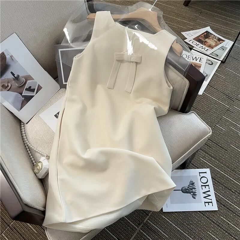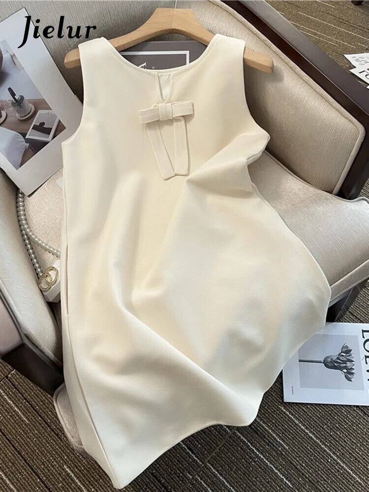 送料無料 Jielur 夏スリムソリッドカラードレス甘いノースリーブ女性ドレスアプリコットブラック V ネックベーシック Bownot ドレス リボン 大人ガーリー スウィート キュート カジュアル サマー 夏物 Vネック AE12188787834386925484
