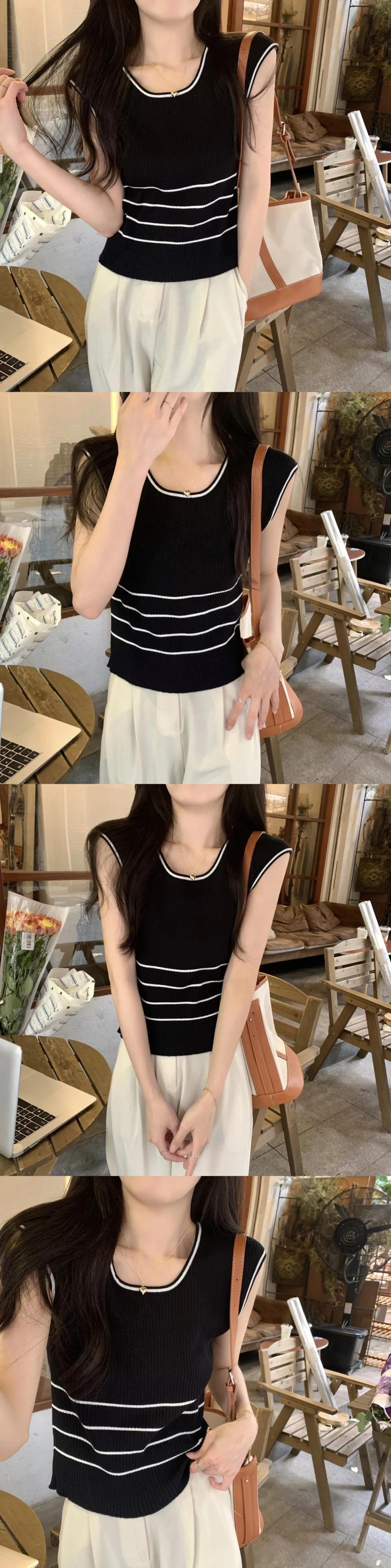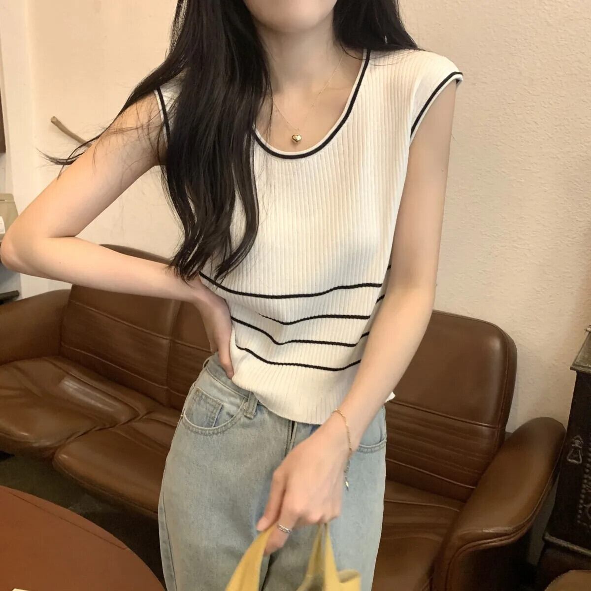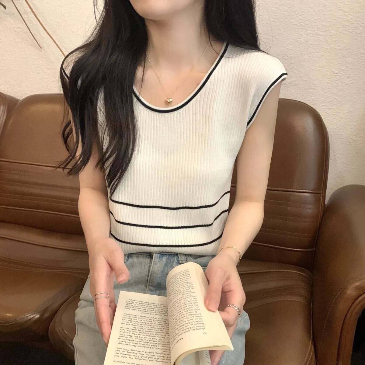 送料無料 Jielur 夏スリムコントラストカラーの女性の Tシャツシンプルなベーシックニット Tシャツ女性黒、白のストライプトップ ホワイト ブラック サマー 夏物 AE12188787879041495065