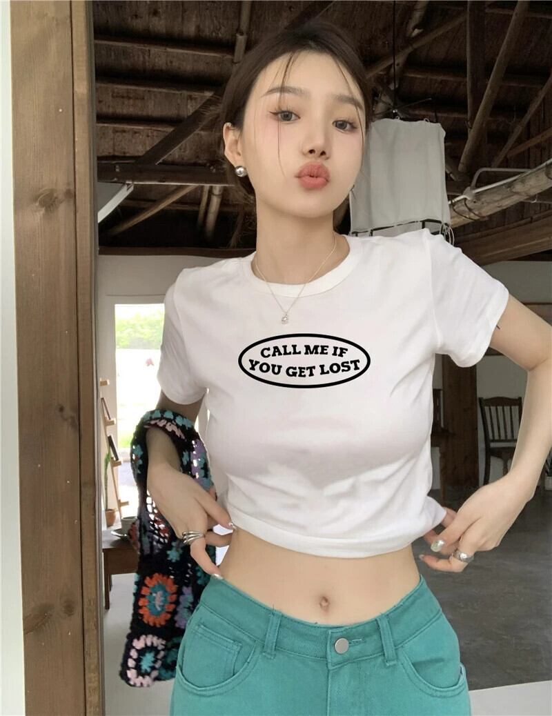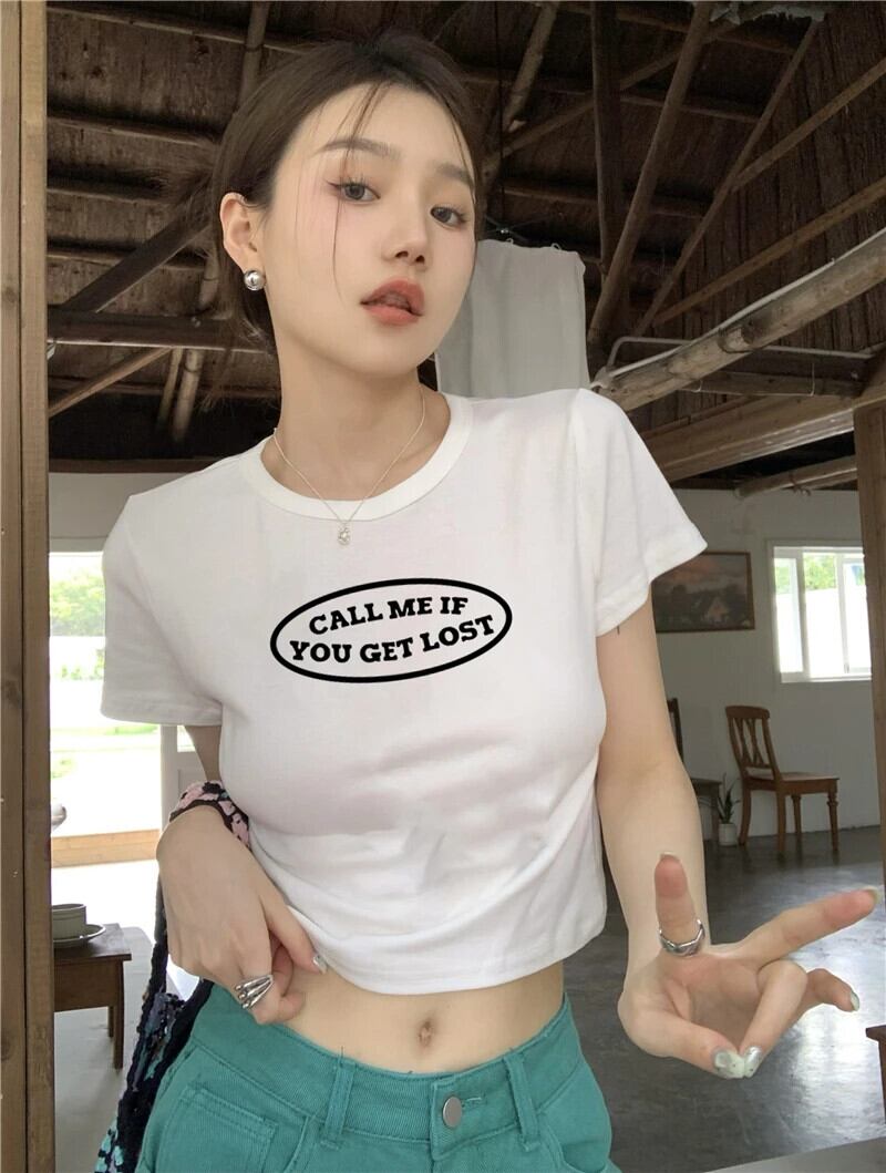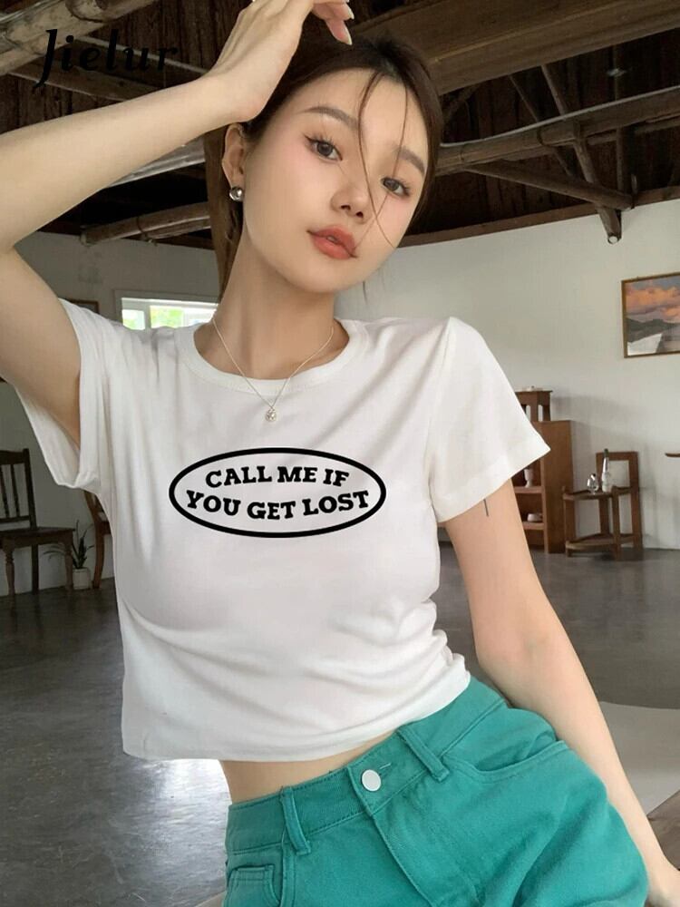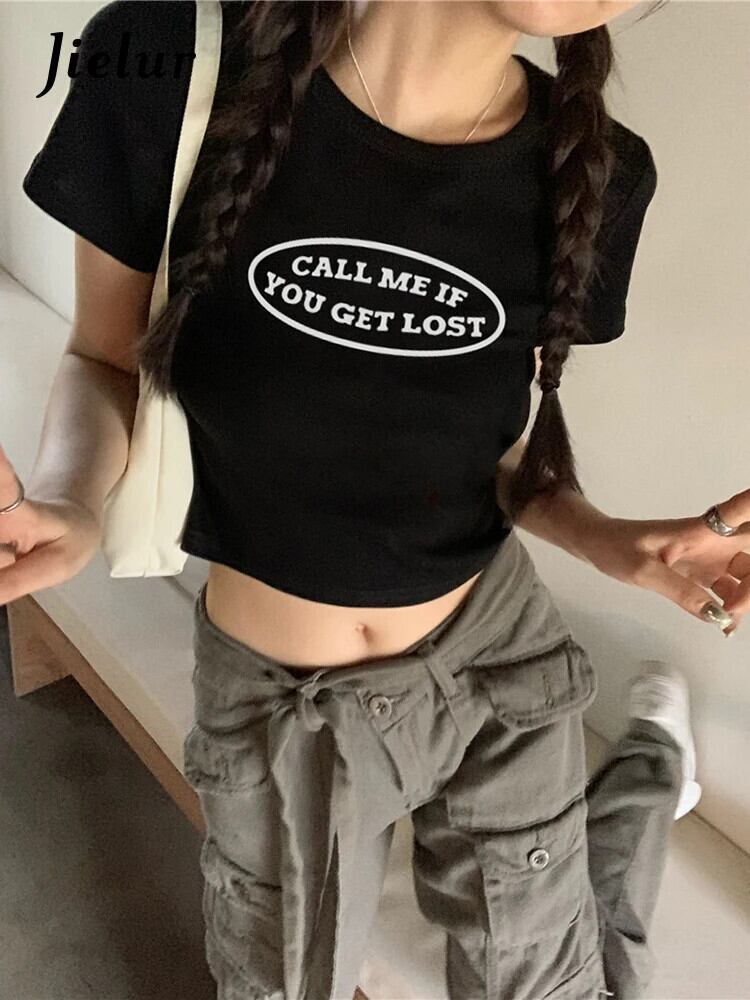 送料無料 Jielur ルーズ黒 Tシャツ夏のレター印刷スリム Tシャツ女性半袖クロップドトップス白 Tシャツ ショート ホワイト ブラック ハーフスリーブ サマー 夏物 AE12188787838671910074