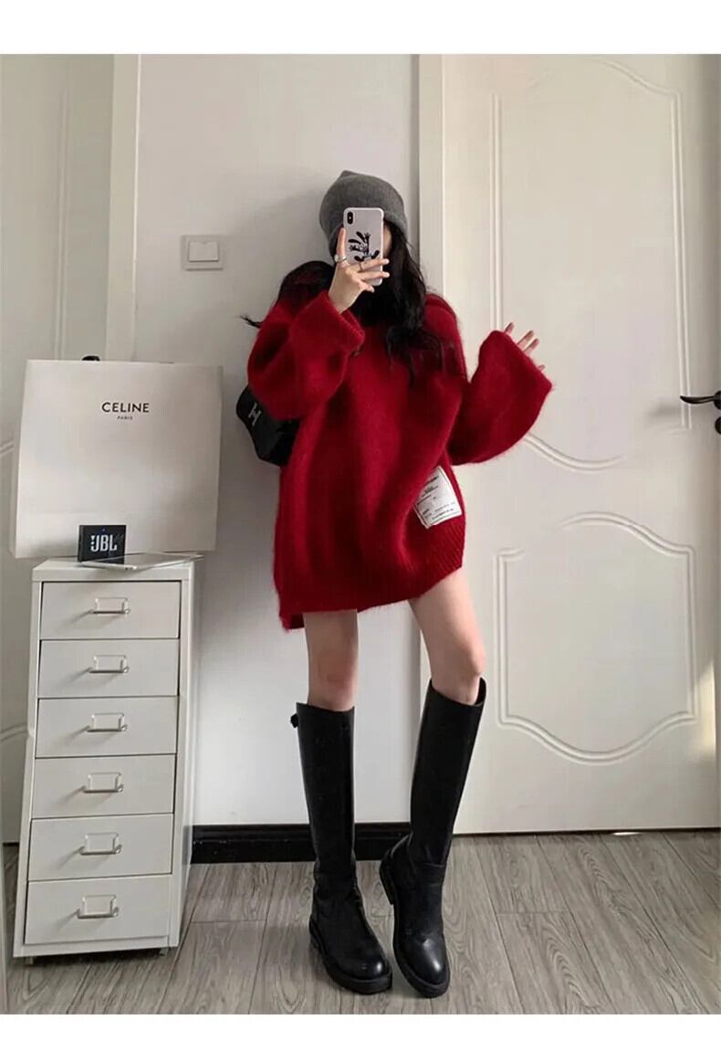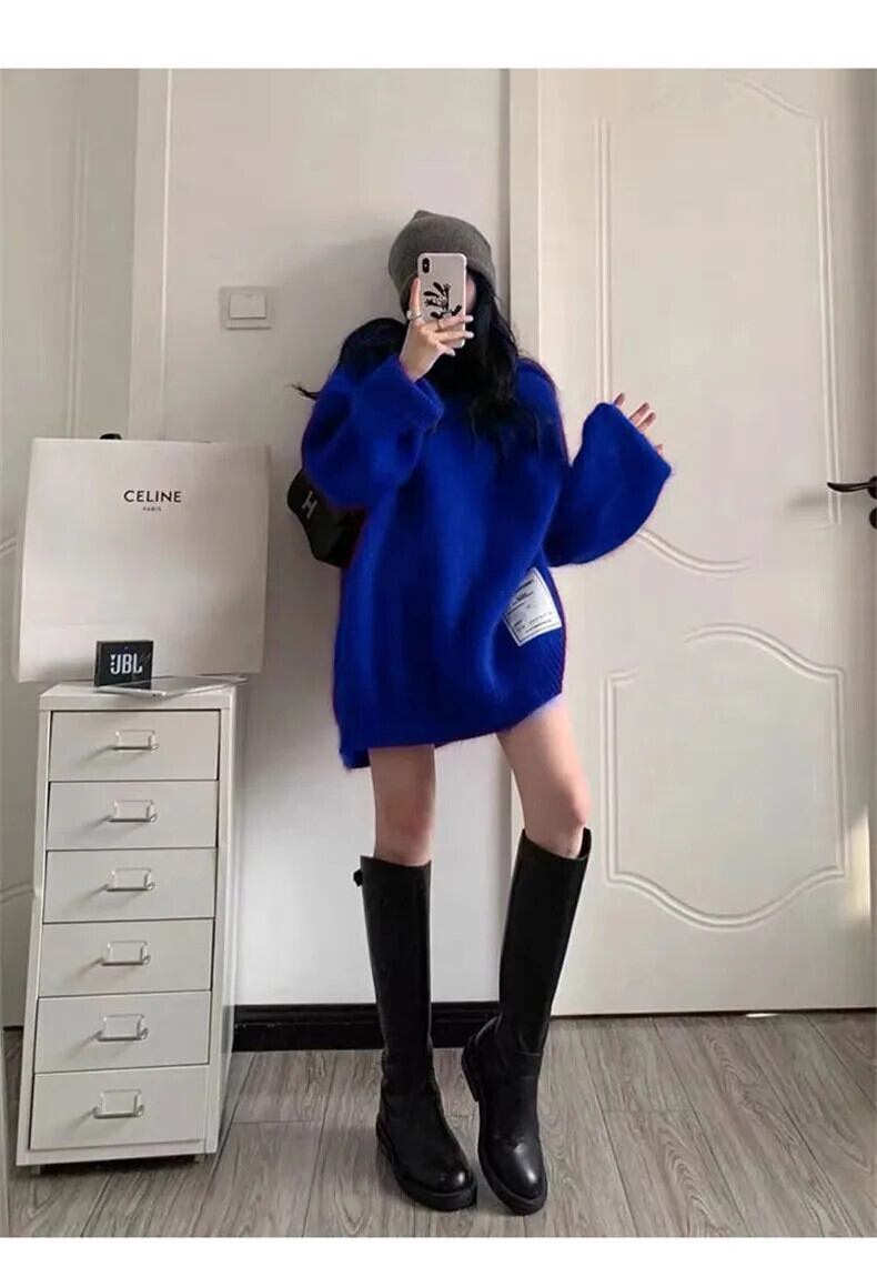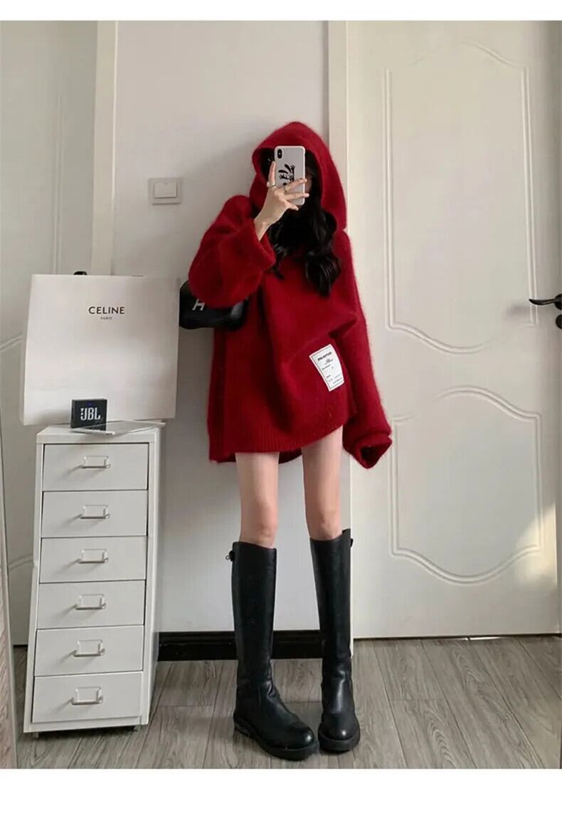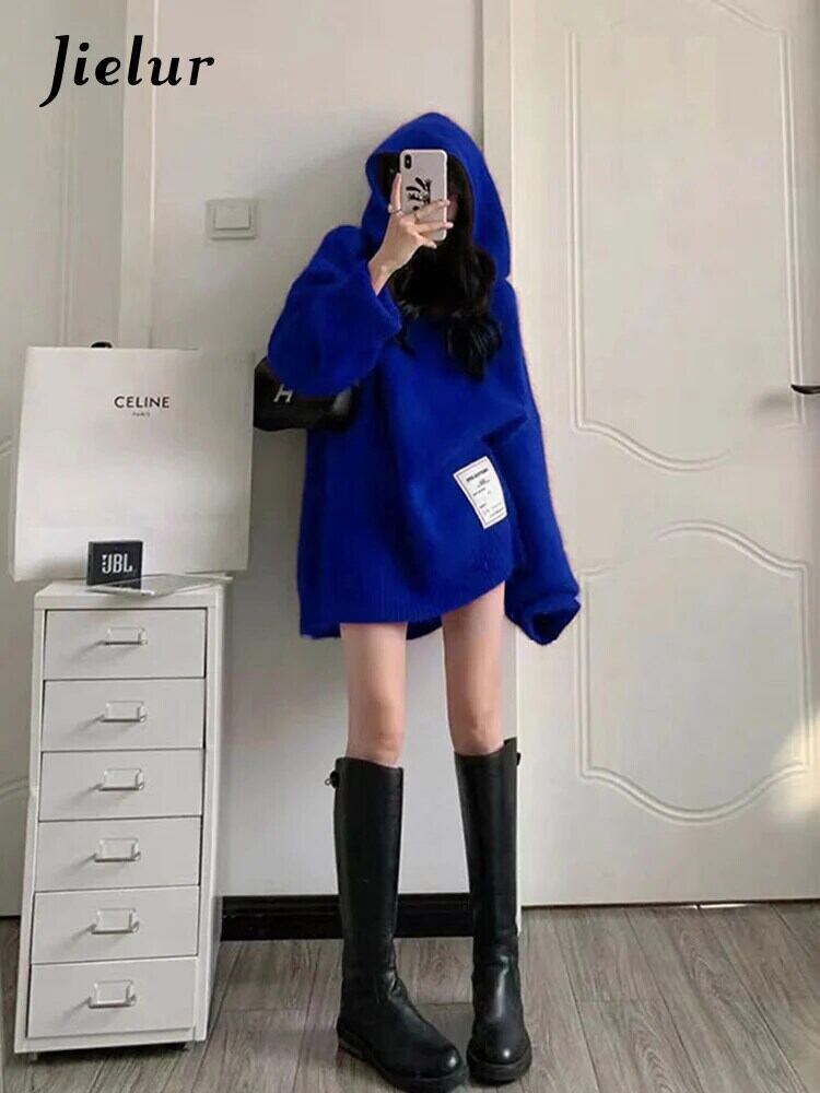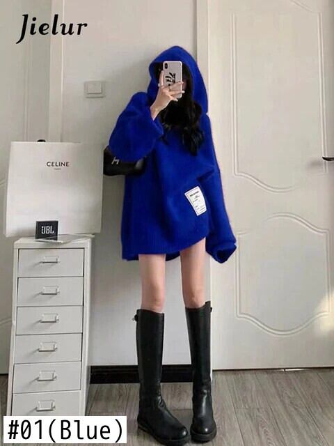 送料無料 Jielur 秋ルーズシックな女性パーカーシンプルスリムソリッドカラーニットパーカー赤青ストリート レッド ブルー オータム 秋物 AE12188787855535081704