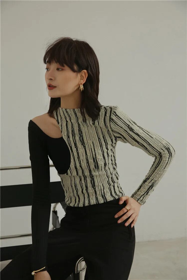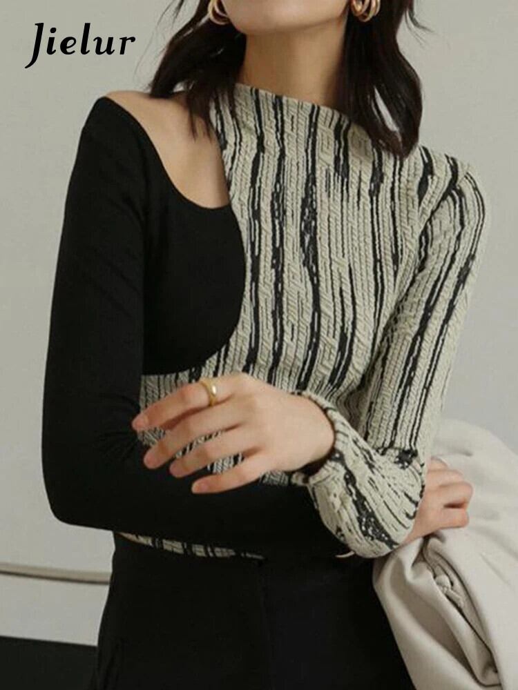 送料無料 Jielur Tシャツ女性のセクシーな中空 Tシャツパッチワーク長袖 Tシャツトップ下着シック 2022 ロング AE12188787829202273161