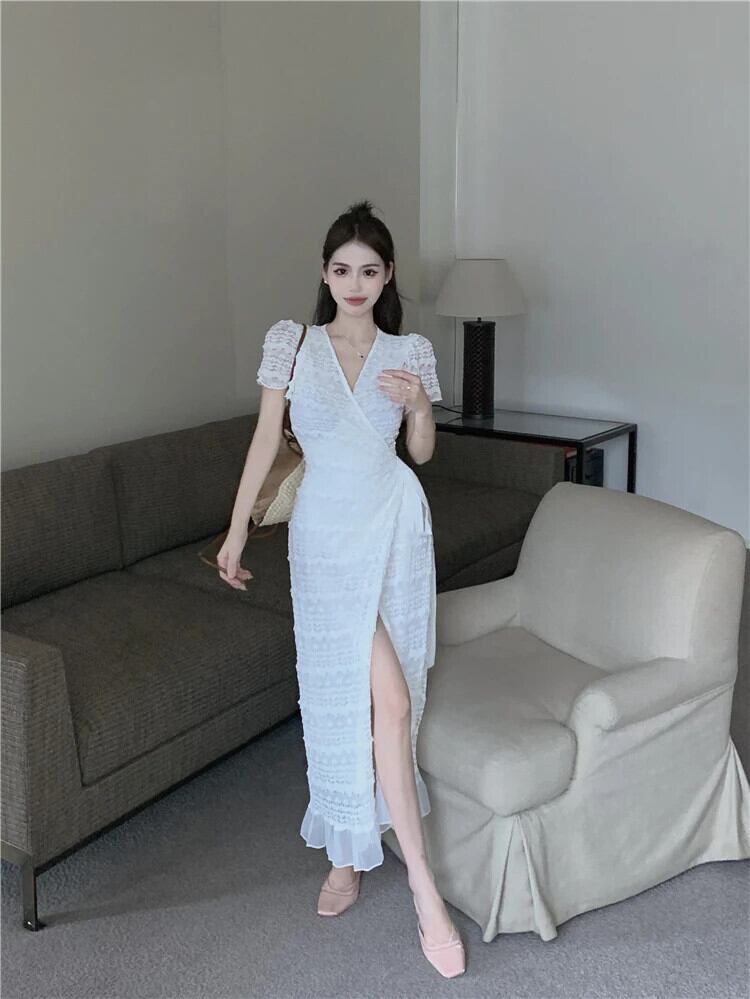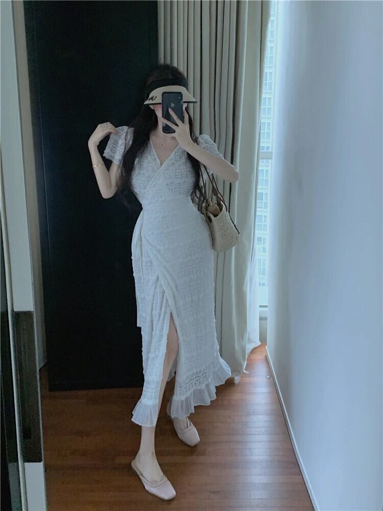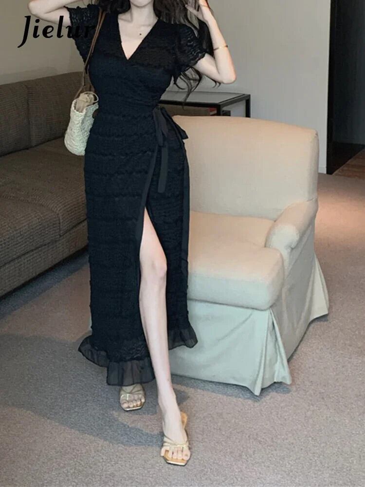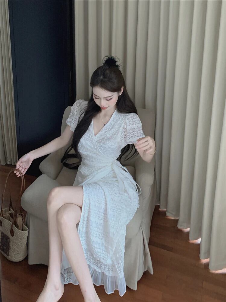 送料無料 Jielur 夏ソリッドカラースリム女性のドレス甘いレースドレス女性黒、白ウエストヴィンテージドレス ホワイト ブラック 大人ガーリー スウィート キュート カジュアル サマー 夏物 ビンテージ AE12188787859877150842