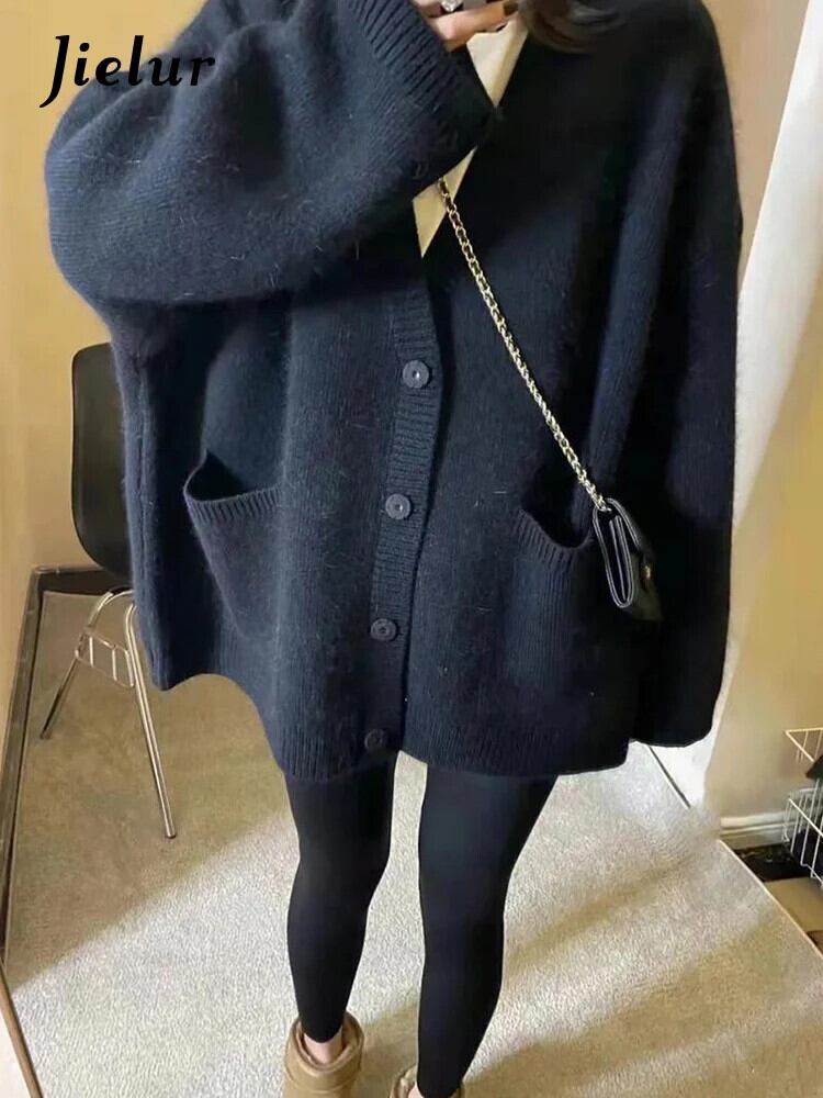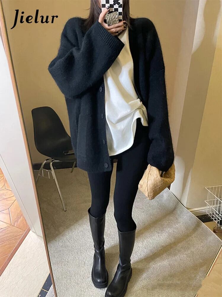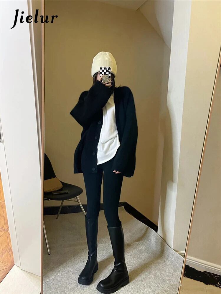 送料無料 Jielur ルーズベーシックスリムインカーディガン女性秋無地シンプルな女性カーディガンニットファッションシックなトップ女性 オータム 秋物 ソリッドカラー AE12188787826719533326
