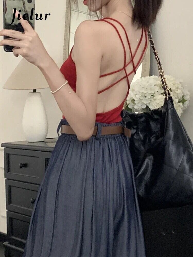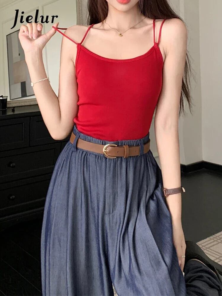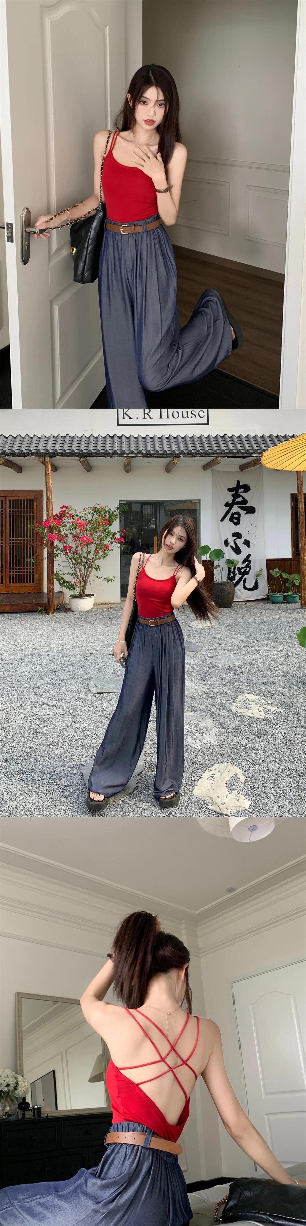 送料無料 Jielur ツーピース夏スリムキャミソール女性無地背中の開いたセクシーな女性のキャミソールレトロウエストルーズパンツ サマー 夏物 ソリッドカラー AE12188787866858143220